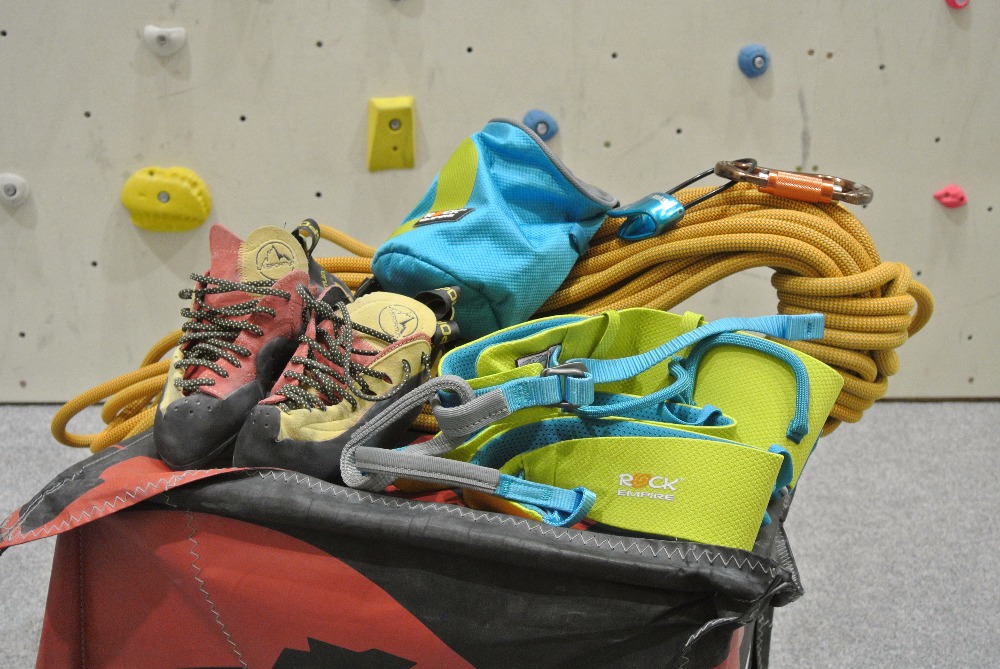 Un alt pas foarte important este să ai tot echipamentul necesar pentru cățărare. Aveți opțiunea de a vă cumpăra propriul echipament, dar nu este indicat să investiți în echipament pentru început. Nu știi cât de mult te va atrage escalada și ce ți se va potrivi. La peretele artificial aveți posibilitatea să închiriați echipamentul de bază și apoi să luați o decizie mai bună atunci când vă cumpărați propriul echipament.