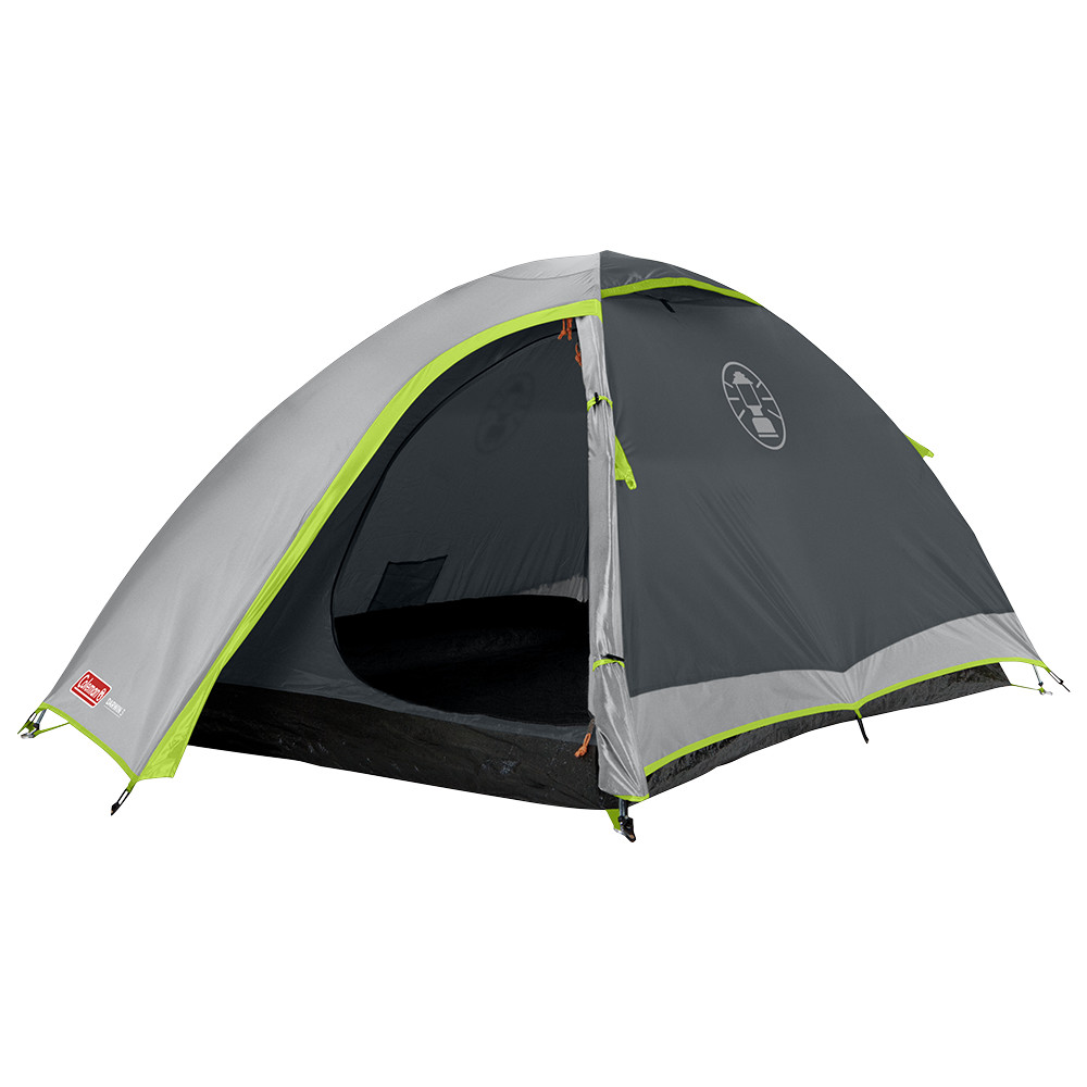Cort practic pentru 3 persoane Darwin 3 de la Coleman. Ideal pentru călătorii și drumeții. Cupola cu două deschideri are o montare complet ușoară și rapidă. Puteți să vă depozitați rucsacurile în absidă. Ancorare foarte fiabilă a tijei cu piroane.