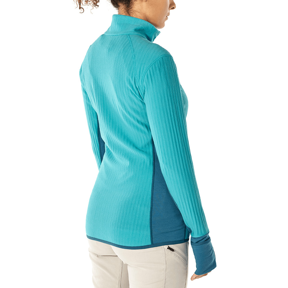 Hanoracul slim fit pentru femei de la Icebreaker vă oferă izolare, respirabilitate și libertate de mișcare. Puloverul are un fermoar 3/4, mâneci raglan, protecție pentru bărbie, găuri pentru degetul mare și cusături flatlock.