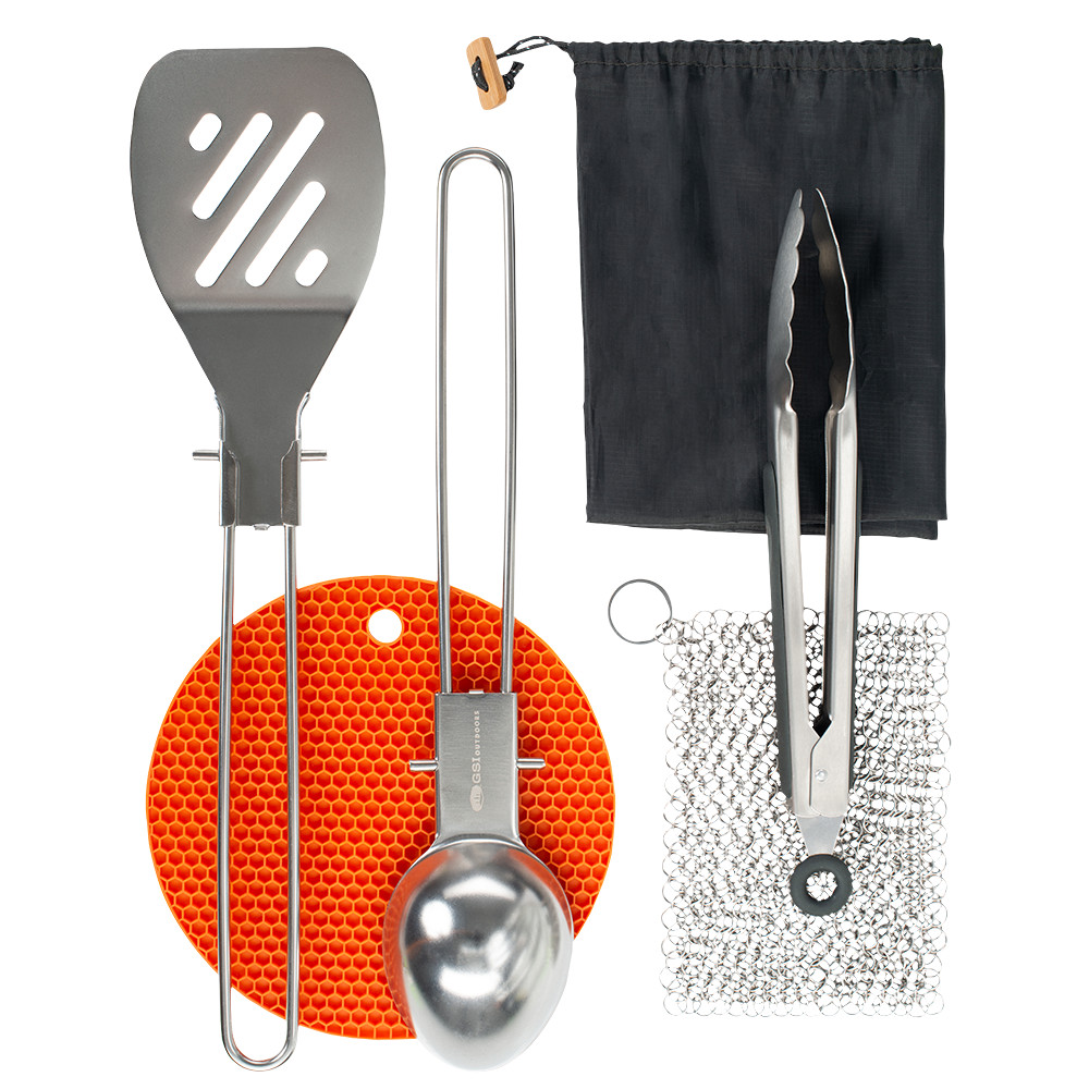 Accesoriile GSI pentru grătar și gătit vă permit să pregătiți mâncarea în aer liber ca într-un restaurant de top. Întregul set este fabricat din oțel inoxidabil premium. Totul este ușor de curățat și este inclusă și o valiză de transport.