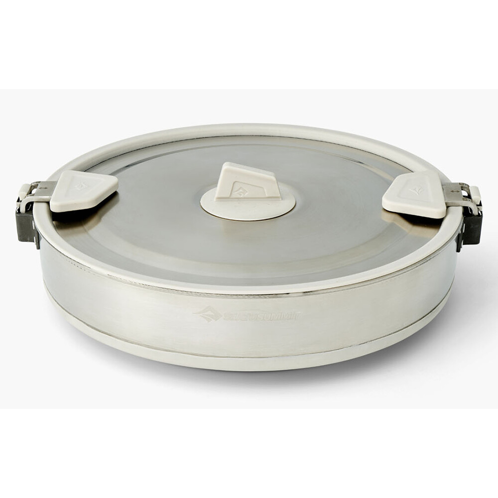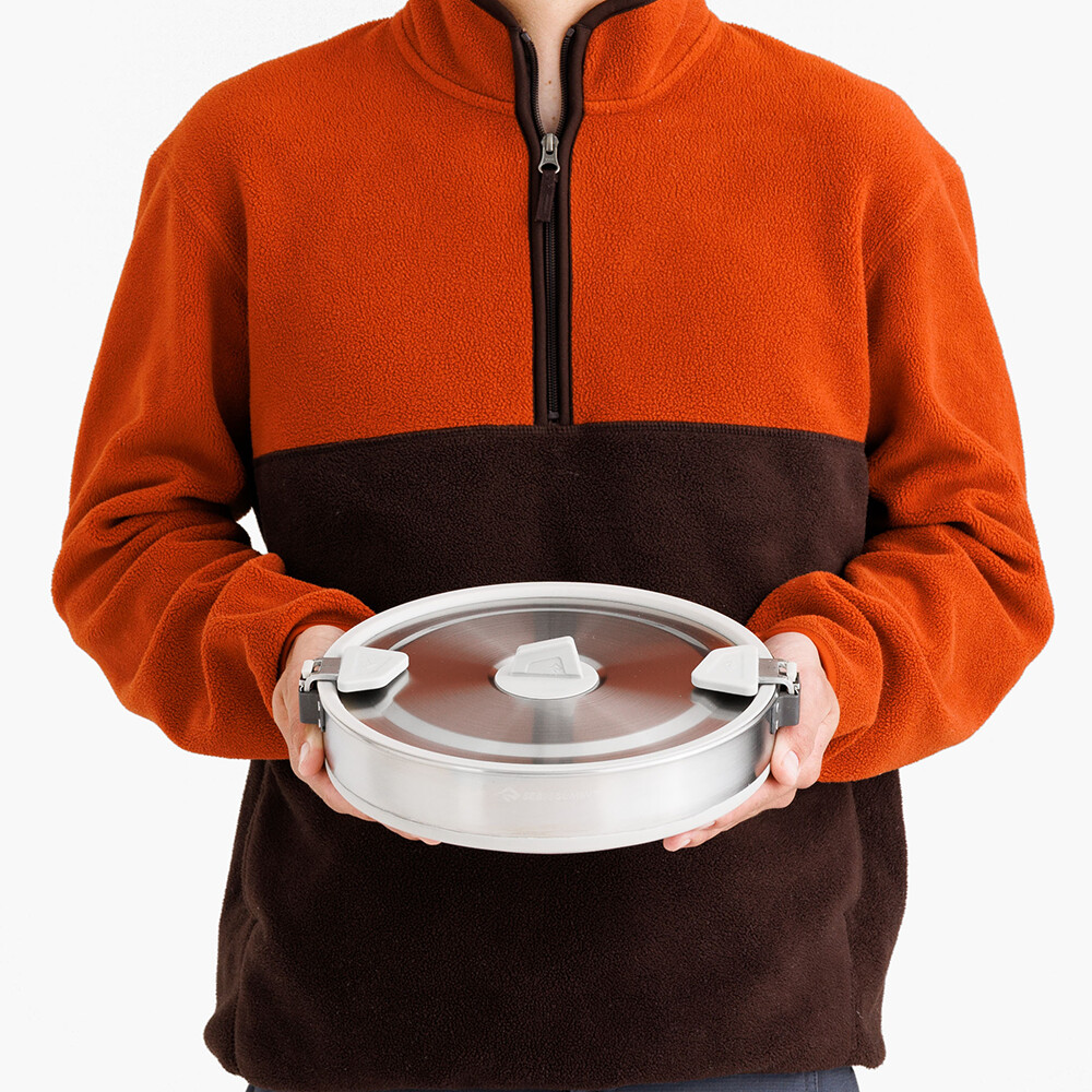 O oală de exterior de la Sea To Summit pe care nici nu veți ști că o aveți în rucsac. Este alegerea perfectă pentru toți fanii călătoriilor ușoare. Este fabricată dintr-o combinație de oțel inoxidabil și silicon alimentar și este extrem de portabilă și ușoară. Include un capac pe care îl puteți "agăța" pe marginea oalei în timp ce gătiți pentru a preveni murdărirea acesteia. Fundul oalei are un miez de aluminiu care conduce căldura uniform și se potrivește tuturor tipurilor de aragazuri de drumeție, inclusiv aragazurilor cu inducție.