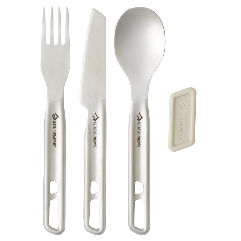 Set de tacâmuri de la Sea To Summit din gama Detour realizat din oțel inoxidabil de înaltă calitate. Include lingură, furculiță și cuțit. De asemenea, este inclus un suport magnetic din silicon, astfel încât să puteți arunca pur și simplu tacâmurile în rucsac sau geantă și totul rămâne împreună, plus fără zăngănit enervant. Potrivit pentru călătorii și mâncarea de zi cu zi.