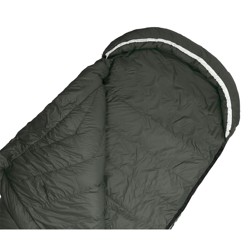 Sac de dormit pentru nopțile calde de vară cu umplutură din fibre sintetice. Are o formă ovală spațioasă, sistem de izolare 360° și mai mult spațiu pentru picioare. Este complet cu fermoar, cu glugă cu cordon și material interior moale.