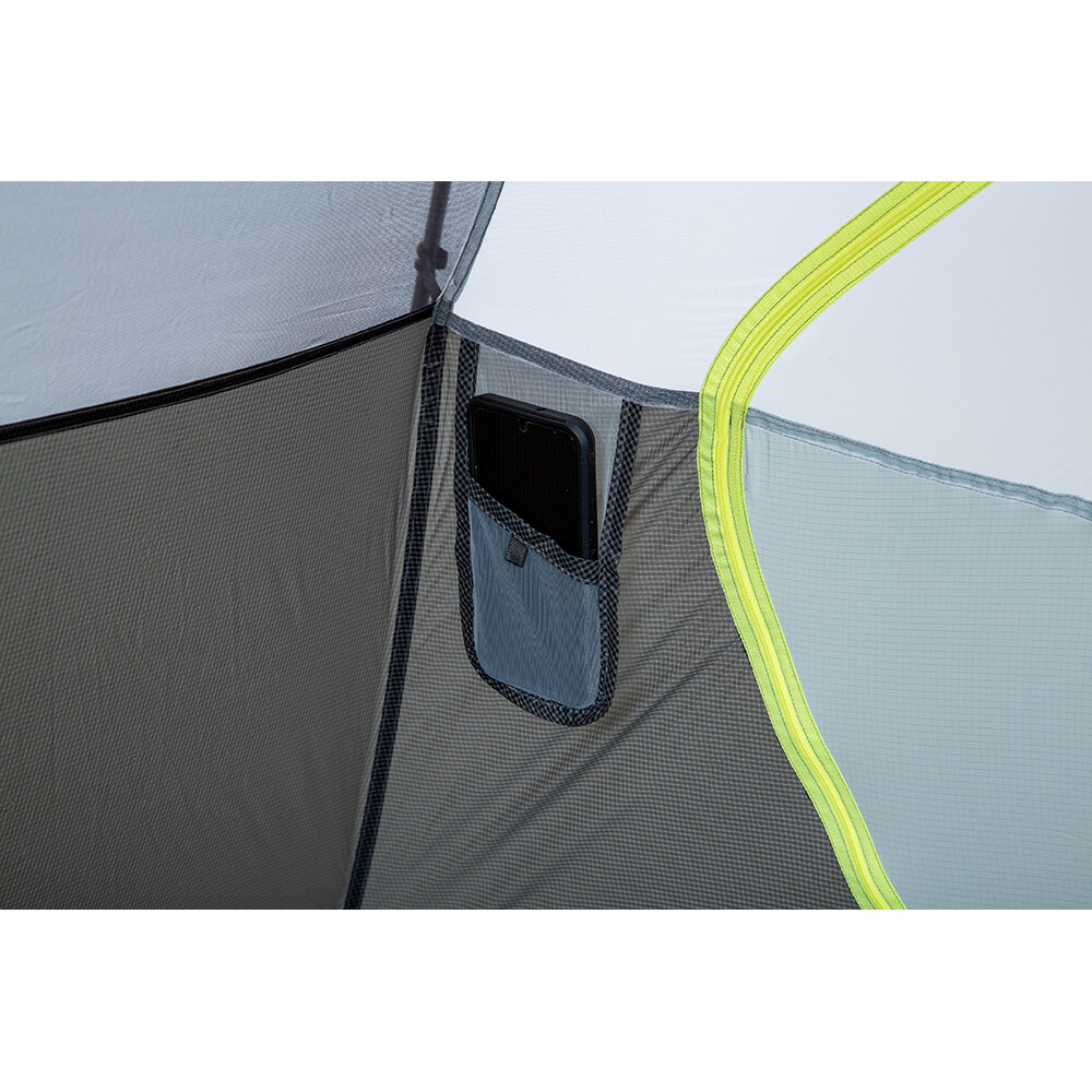 Dragonfly Osmo 2P este un cort de drumeție pentru două persoane de la Nemo, care este autonom și poate fi montat acolo unde nu este posibil cu țăruși. Greutatea sa foarte mică de doar 1200 g îl face ideal pentru drumeții lungi și ciclism. Folosiți vestibulul spațios pentru a vă depozita rucsacul, iar în interior veți găsi o mulțime de buzunare pentru a depozita articole mai mici, inclusiv un compartiment special pentru o lampă de cap. Acesta dispersează lumina uniform în tot spațiul, ca o lanternă. Cortul interior are intrări realizate din plasă opacă, care oferă multă intimitate și acționează, de asemenea, ca o plasă de țânțari.