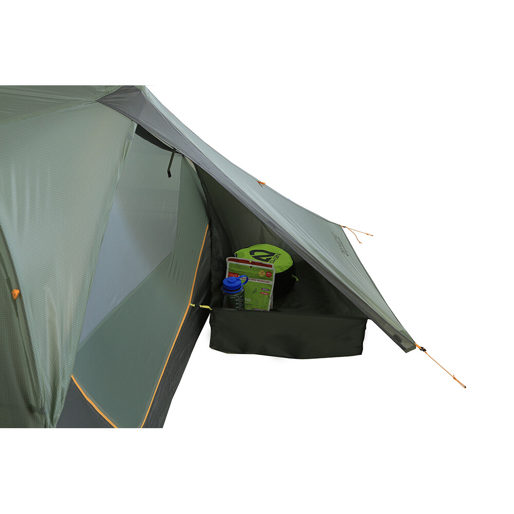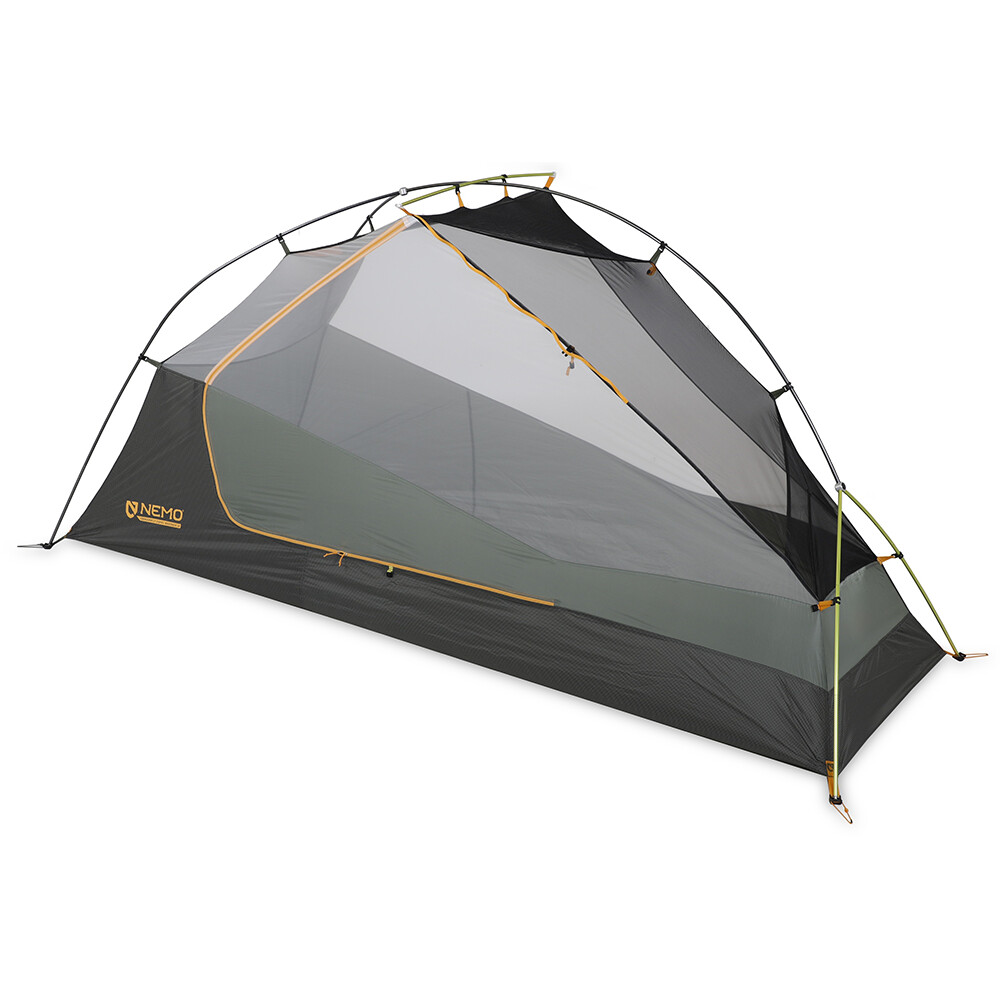Cort ultralight de la Nemo conceput pentru ciclism sau sporturi nautice. Segmentele de stâlp scurtate la 37 cm permit atașarea acestuia la bicicletă (sub ghidon sau pe cadru). Învelișul este fabricat dintr-un material întărit, impermeabil, cu ochiuri pentru o fixare ușoară. În interiorul cortului veți găsi o mulțime de buzunare pentru depozitarea lucrurilor, inclusiv un compartiment special pentru o lampă frontală. Aceasta răspândește lumina uniform în tot spațiul, ca atunci când luminează o lanternă. De asemenea, este inclusă o piesă de podea suplimentară, care creează o zonă separată uscată și curată în vestibul pentru depozitarea bocancilor și a altor echipamente (zona de aterizare).