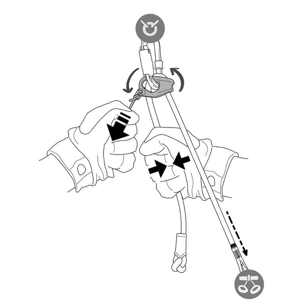 Dual Connect Adjust este o buclă de deblocare cu posibilitatea de a-și regla la infinit lungimea. Bucla este utilizată pentru deblocare la punctul de ancorare și permite coborârea confortabilă în rapel cu ajutorul unui prusik sub ajutorul de rapel. Bucla reglabilă permite alpinistului să stabilească lungimea care i se potrivește cel mai bine pentru manipularea corzii și a echipamentului la punctul de ancorare (pe gondolă). Acesta este atașat la asigurare printr-o buclă fox, o buclă subțire de chingă care este cusută pe capătul corzii. Datorită formei sale ergonomice, Rope Adjust permite reglarea rapidă și ușoară a lungimii cu o singură mână. Al doilea braț are o lungime fixă, ideală pentru rapel.