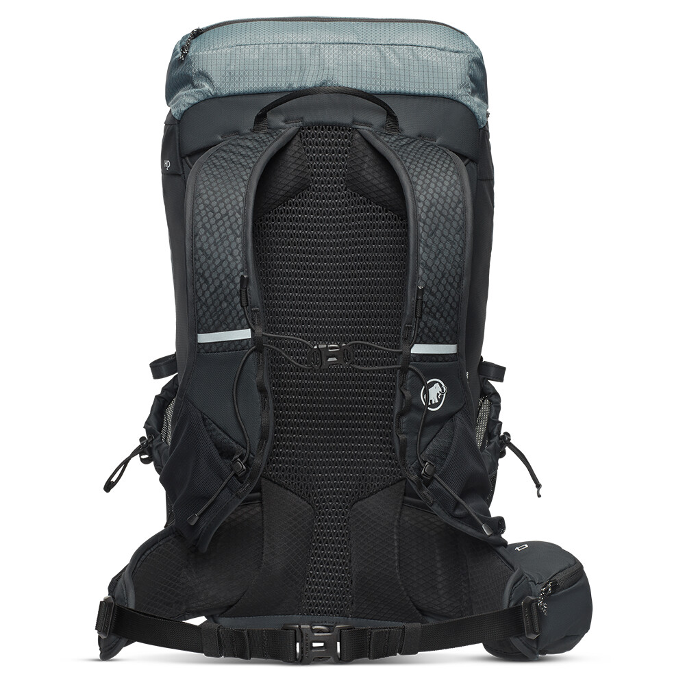Rucsac ușor pentru drumeții cu un buzunar principal cu acces frontal și capac rulant superior. Are buzunare din plasă pe curelele de umăr și pe centura de talie. Compatibil cu hidrovac, cu posibilitatea de a atașa bețe.