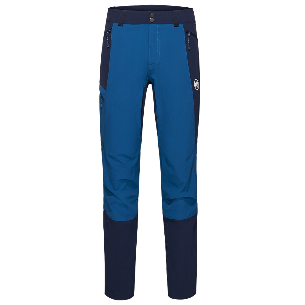 Pantalonii sunt realizați din materiale funcționale care sunt elastice, absorb umiditatea și, datorită panourilor ripstop, rezistente la abraziuni. Croiala și construcția pantalonilor îi fac potriviți pentru terenurile alpine. Talia parțial elastică este completată de bucle pentru curea. Genunchii preformați nu restricționează mișcarea. Două buzunare cu fermoar păstrează obiectele mici în siguranță. Buzunarul cu fermoar de pe picior este accesibil chiar și atunci când purtați o șa de alpinism.