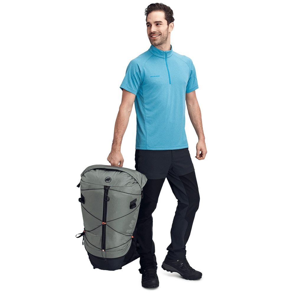 Rucsacul Ducan Spine de la Mammut are un sistem de spate care se mișcă diferit pentru partea superioară a spatelui și diferit pentru șolduri. Datorită manșetei flexibile pivotante, era spatelui dureros și a viselor nerealizate a luat sfârșit.