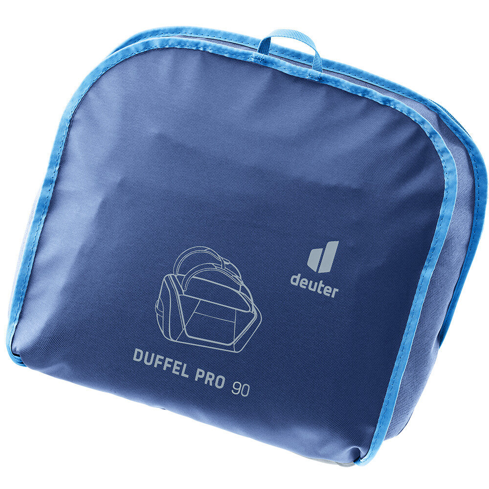 Duffel Pro 90 este cea mai mare geantă de voiaj din seria Duffel Pro de la producătorul german deuter. În interior veți găsi o mulțime de spațiu pentru echipamentul, hainele și pantofii dumneavoastră. Curelele sunt reglabile, astfel încât să puteți transporta confortabil geanta pe umăr sau pe spate. În plus, curelele pot fi detașate și depozitate într-un buzunar de pe capac. Când vă întoarceți acasă, puteți plia cu ușurință geanta și o puteți depozita în buzunarul exterior integrat.