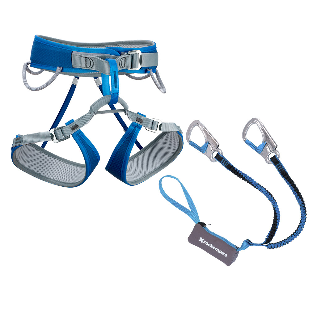 Set de scaun de alpinism Rock Empire Streak și frână de ferrata Dynatwist Lite.