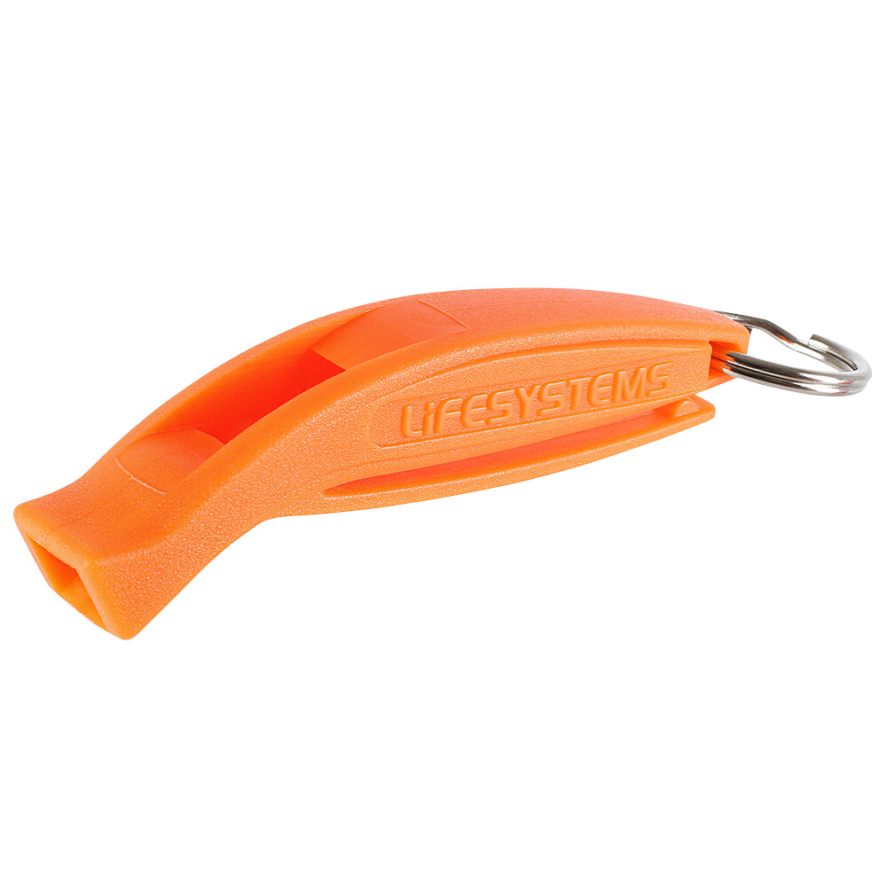 Fluier de la Lifesystems pentru apel de urgență pentru ajutor. Are un volum de 108 dB al unui ton ascuțit, plutește pe apă și poate fi atașat la rucsacuri, curele și alte echipamente cu o clemă sau un breloc.