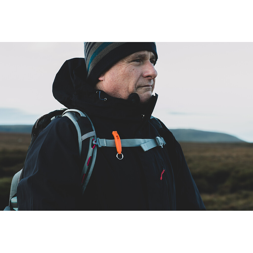 Fluier pentru apel de urgență pentru ajutor. Are un volum de 122 dB, plutește pe apă și poate fi atârnat în jurul gâtului sau atașat cu un clip la rucsacuri și alte echipamente.