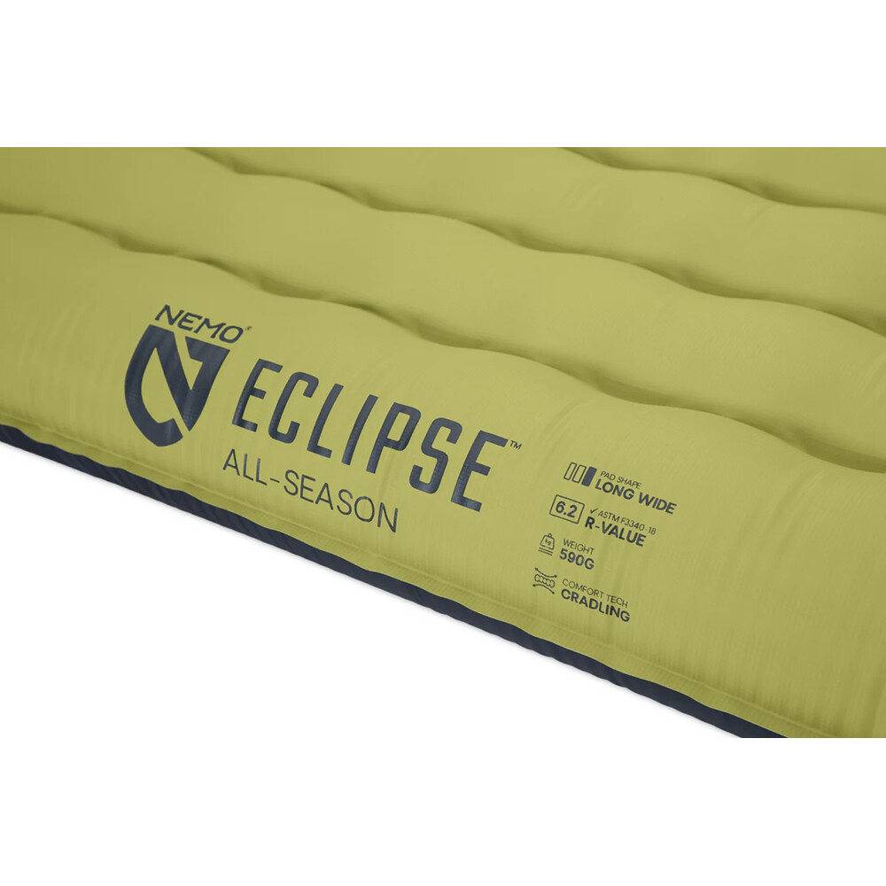 Salteaua gonflabilă Eclipse™ All-Season de la Nemo Equipment oferă cel mai bun confort pentru dormit în aer liber. Cu o grosime de 10 cm, aceasta oferă o amortizare substanțială a aerului pentru a ajuta la eliminarea denivelărilor terenului și a asigura o întindere stabilă și moale. Designul cu camere ușor conturate creează un efect natural de "leagăn" care promovează poziționarea corectă a corpului în timpul somnului.