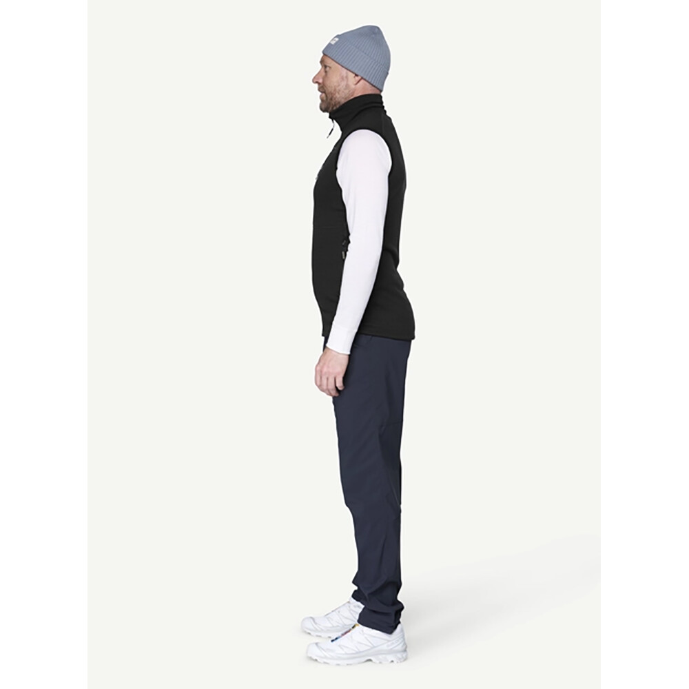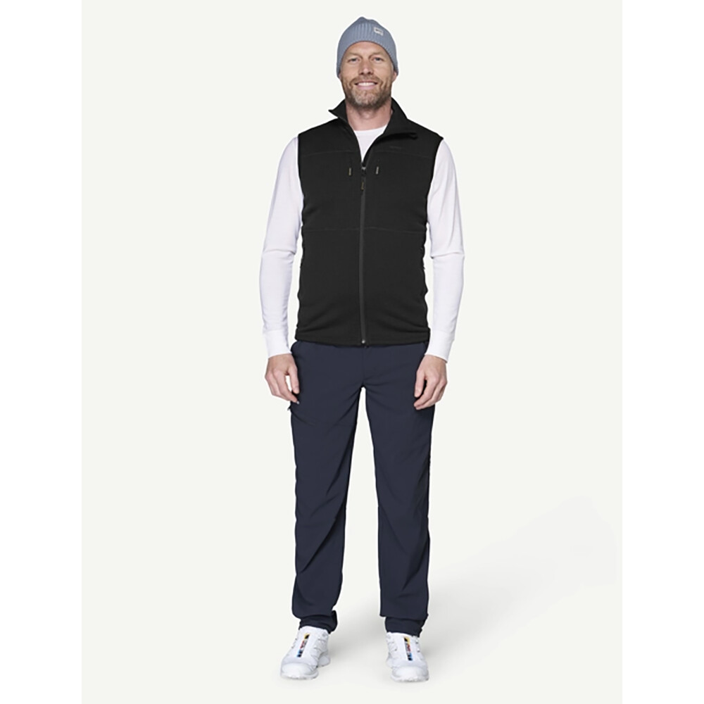 Este fabricată din 100% lână Merino cu o greutate de 310. Hanoracul este foarte respirabil, cald și rezistent la mirosuri. Vă va ține de cald chiar și atunci când sunteți ud. Gulerul stand-up protejează gâtul de frig. tivul inferior este completat cu un cordon de strângere pentru o potrivire perfectă. Vesta are o mulțime de buzunare pentru depozitarea obiectelor de valoare sau a gustărilor mici.