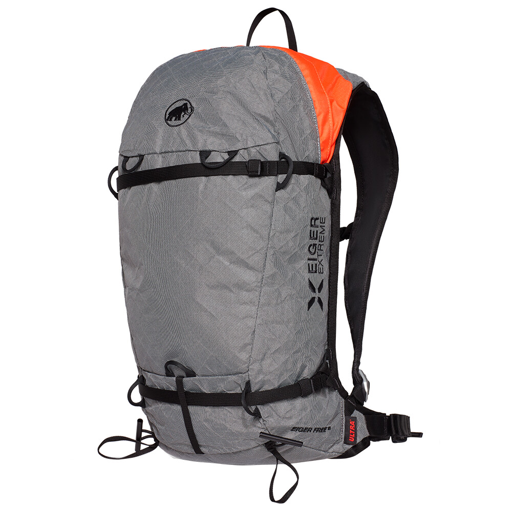 Eiger Free 20 de la Mammut este un rucsac de schi care include un airbag de avalanșă și cântărește doar 1500 g. Este fabricat din țesătură ULTRA™ ultraușoară, dar foarte durabilă. Sistemul nou dezvoltat Eiger Hook vă permite să ajustați curelele pentru a transporta diferite echipamente (schiuri, snowboard, frânghie, bețe, pioleți...) și funcționează bine chiar și cu mănuși groase. rucsacul face parte din colecția premium Eiger Extreme de la Mammut, care oferă echipamente tehnice pentru condițiile exigente ale munților înalți. Fabricat din materiale de înaltă calitate, cu accent pe durabilitate și greutate redusă.
