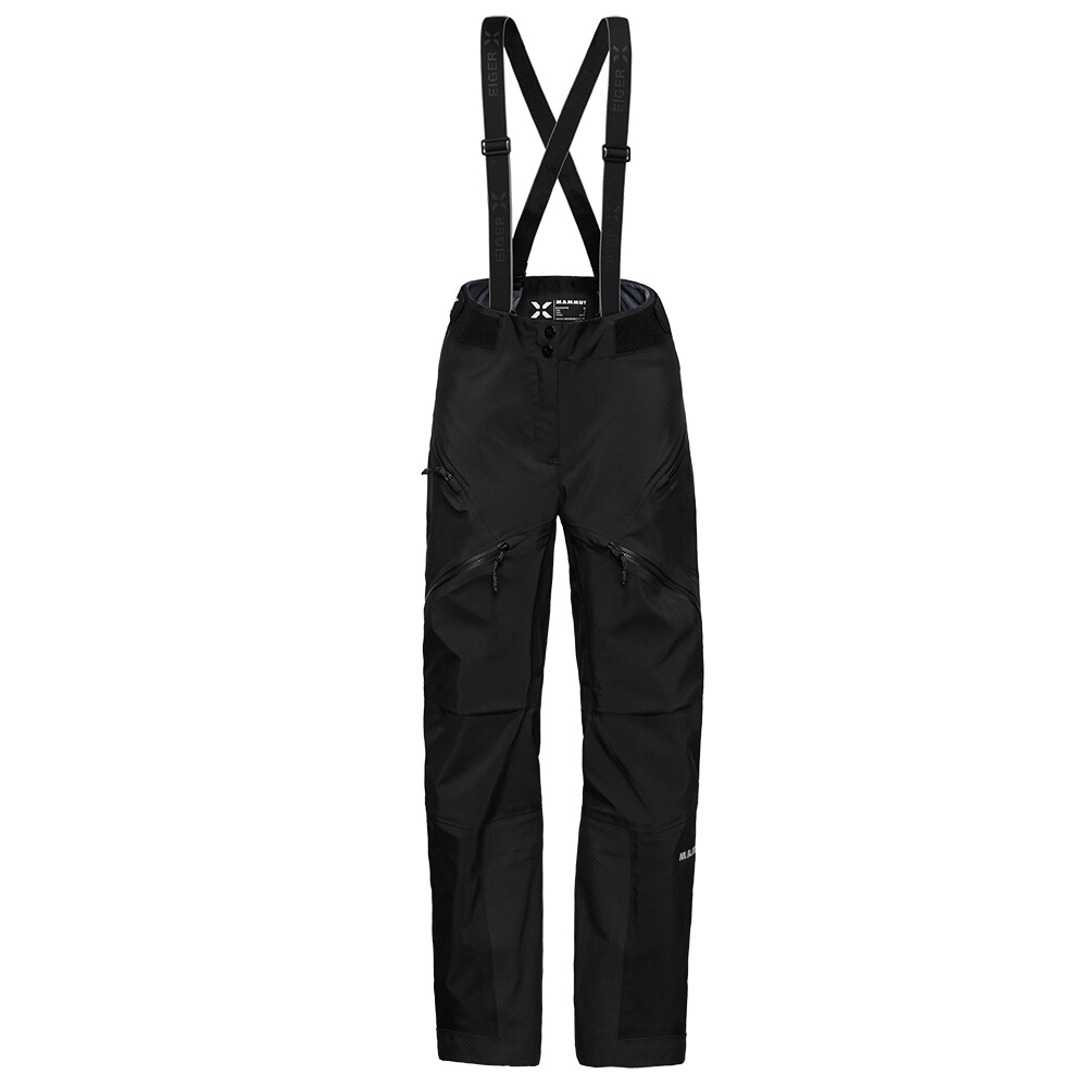 Pantalonii sunt realizați din GORE-TEX Pro în 3 straturi, cu o membrană ePE fără PFC. Acest lucru face ca pantalonii să fie extrem de rezistenți la vânt, apă și abraziune, rămânând în același timp respirabili. Ținuta sofisticată pentru femei și detaliile elaborate asigură confort și funcționalitate în timpul alpinismului. Pantalonii au bretele reglabile și detașabile. Datorită închizătoarelor practice Velcro de la talie, pantalonii se potrivesc perfect. Fermoarele laterale permit reglarea temperaturii. Buzunarele frontale sunt accesibile chiar și atunci când purtați o șa de alpinism. Reflector RECCO® integrat crește șansele de salvare în caz de urgență.