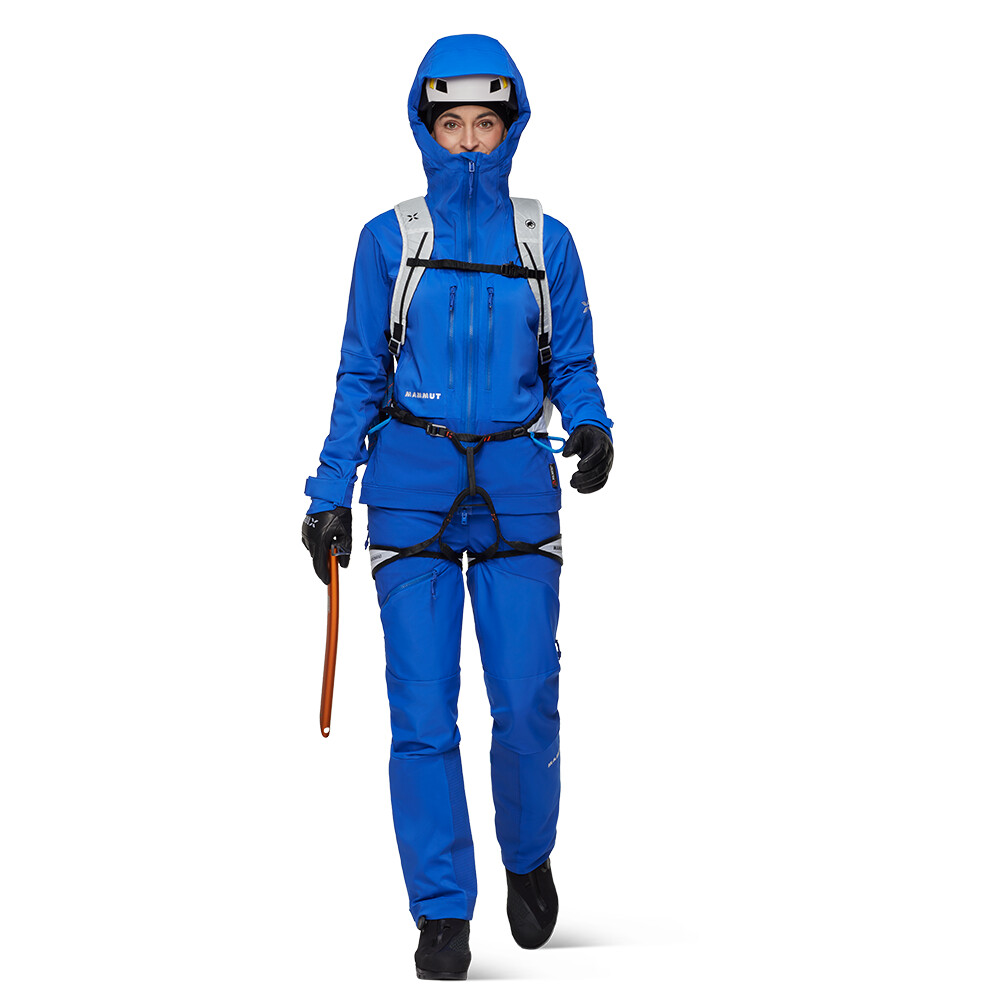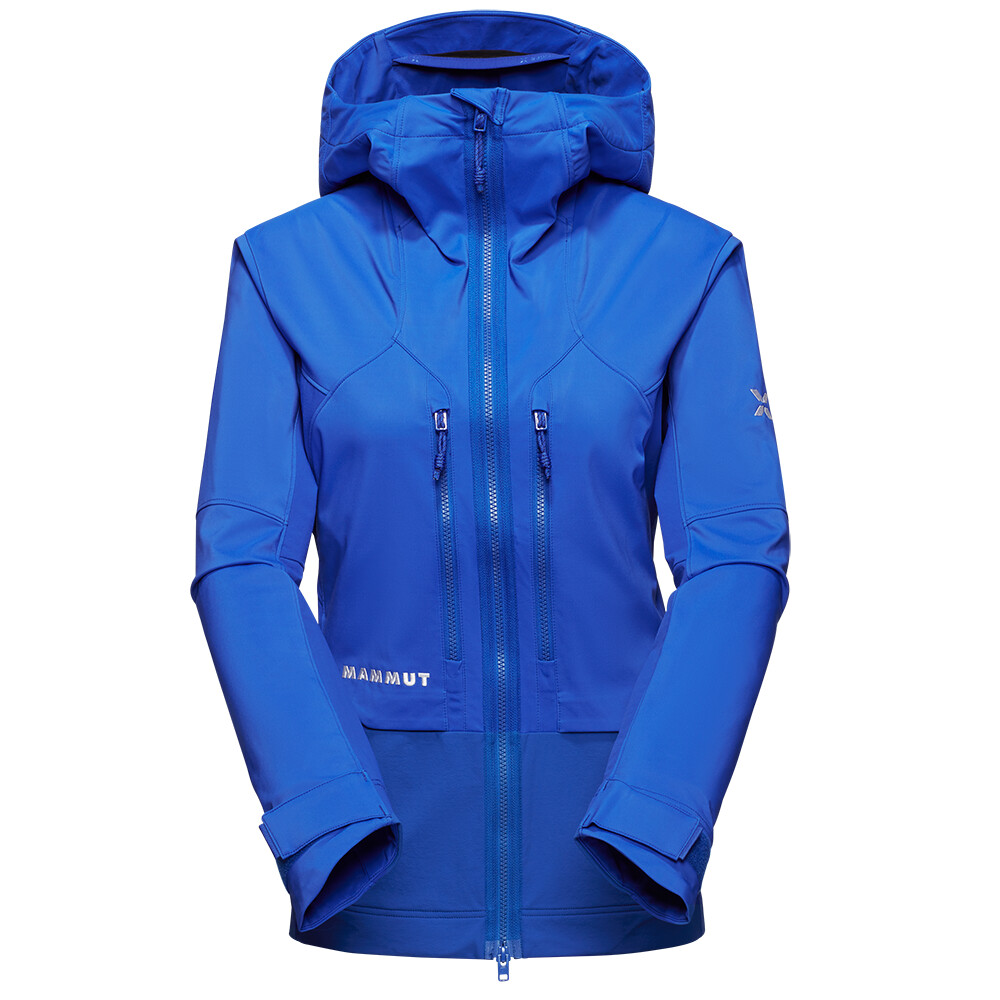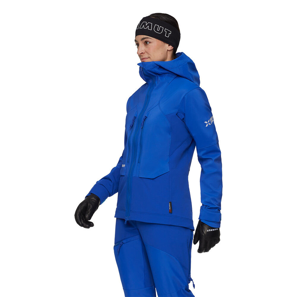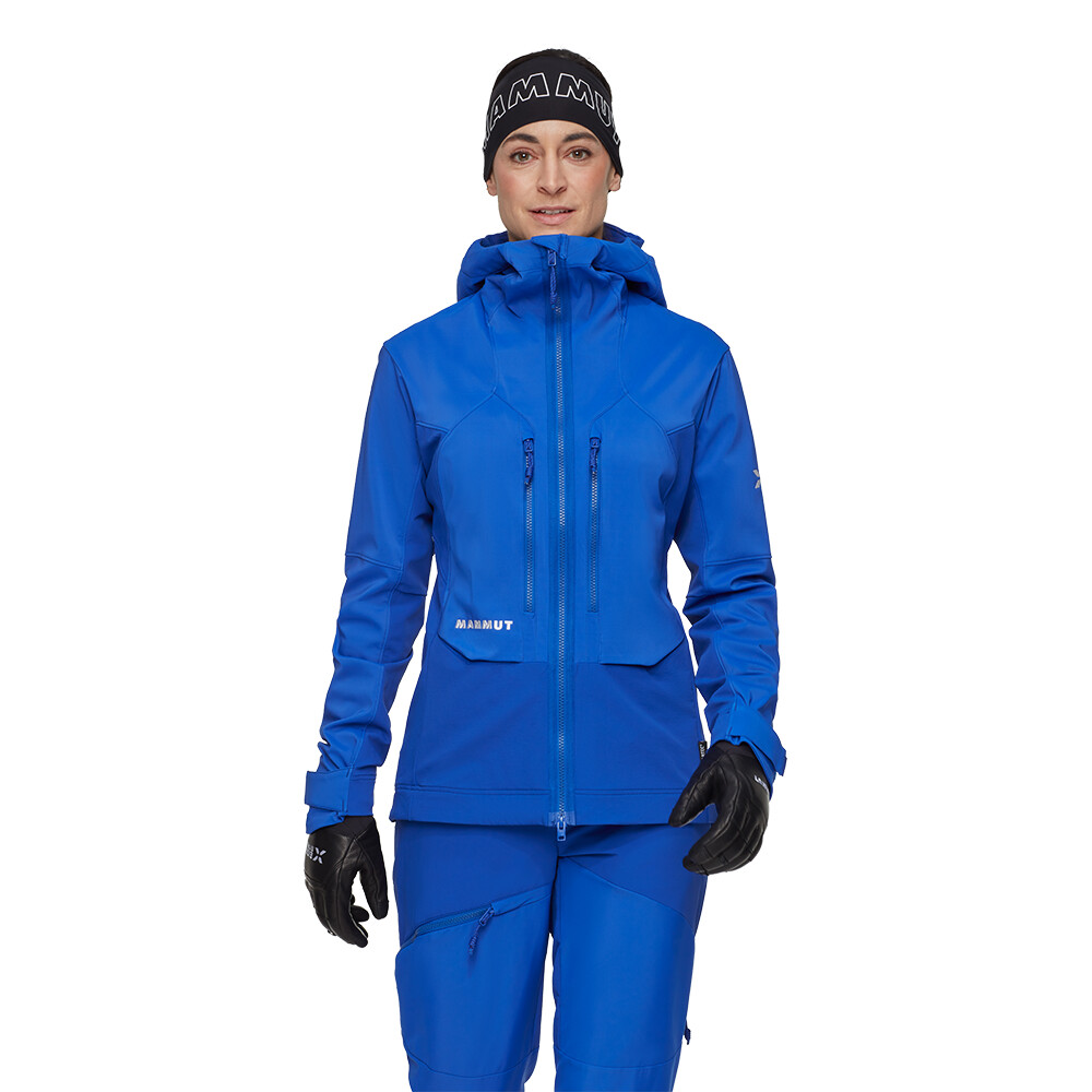 Eiger Nordwand Pro SO Hooded Jacket Women de la Mammut oferă protecție pe vreme nefavorabilă și libertate de mișcare.