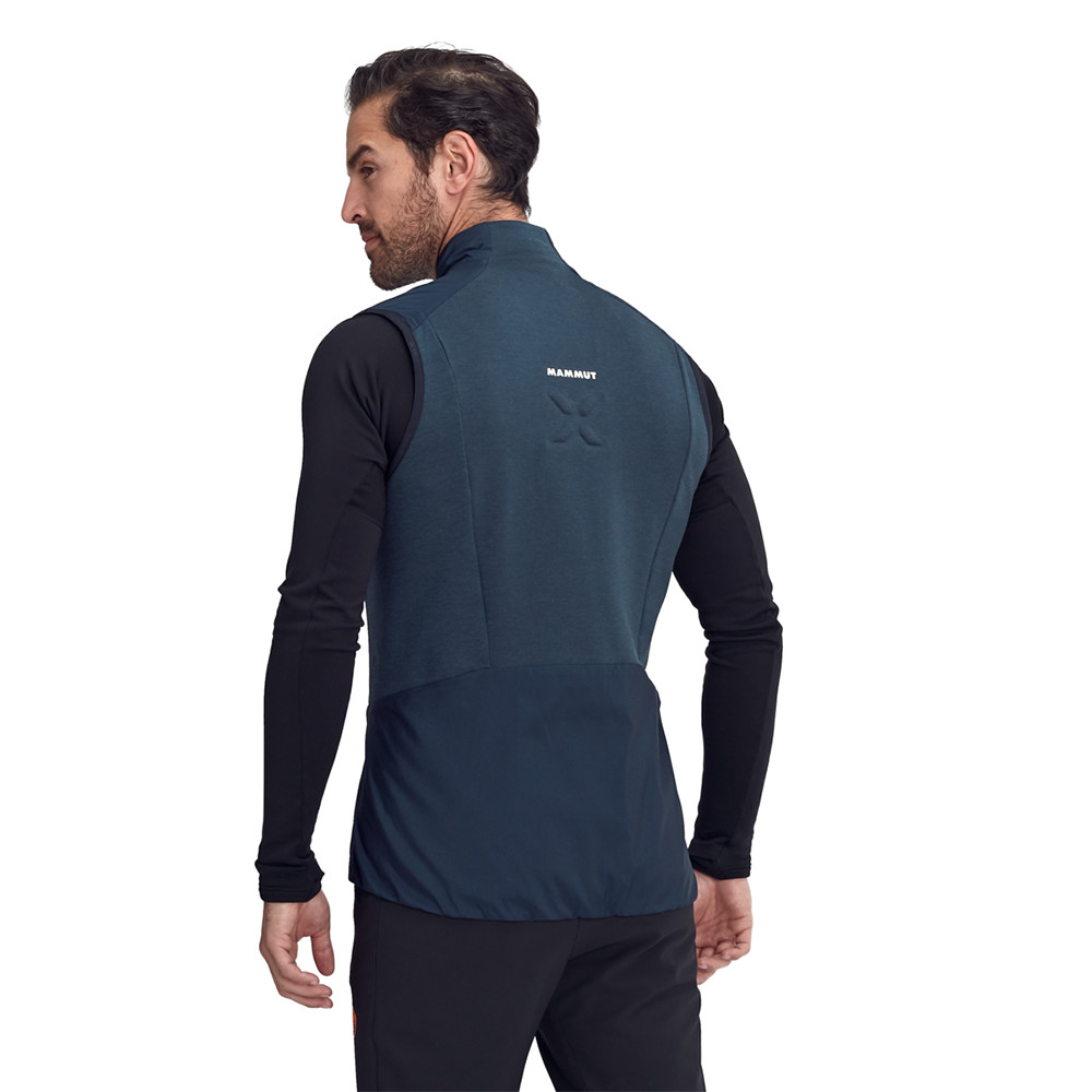 Vesta sofisticată din punct de vedere tehnic și ușor izolată din colecția Eiger Extreme de la Mammut. Este făcută pentru mișcare intensă și alpinism în munți înalți. Materialul exterior Pertex® Quantum Air vă protejează de vânt și parțial de ploaie. Dispune de tehnologia Diamond Fuse pentru un echilibru ideal între protecția împotriva intemperiilor, respirabilitate și rezistență la abraziune. Materialul izolant interior din polyartec nu numai că vă ține de cald, dar este excelent și la disiparea căldurii în exces. Vesta se potrivește perfect și asigură o libertate maximă de mișcare, nu numai datorită tăieturii, ci și datorită panourilor elastice de pe părțile laterale și din spate.