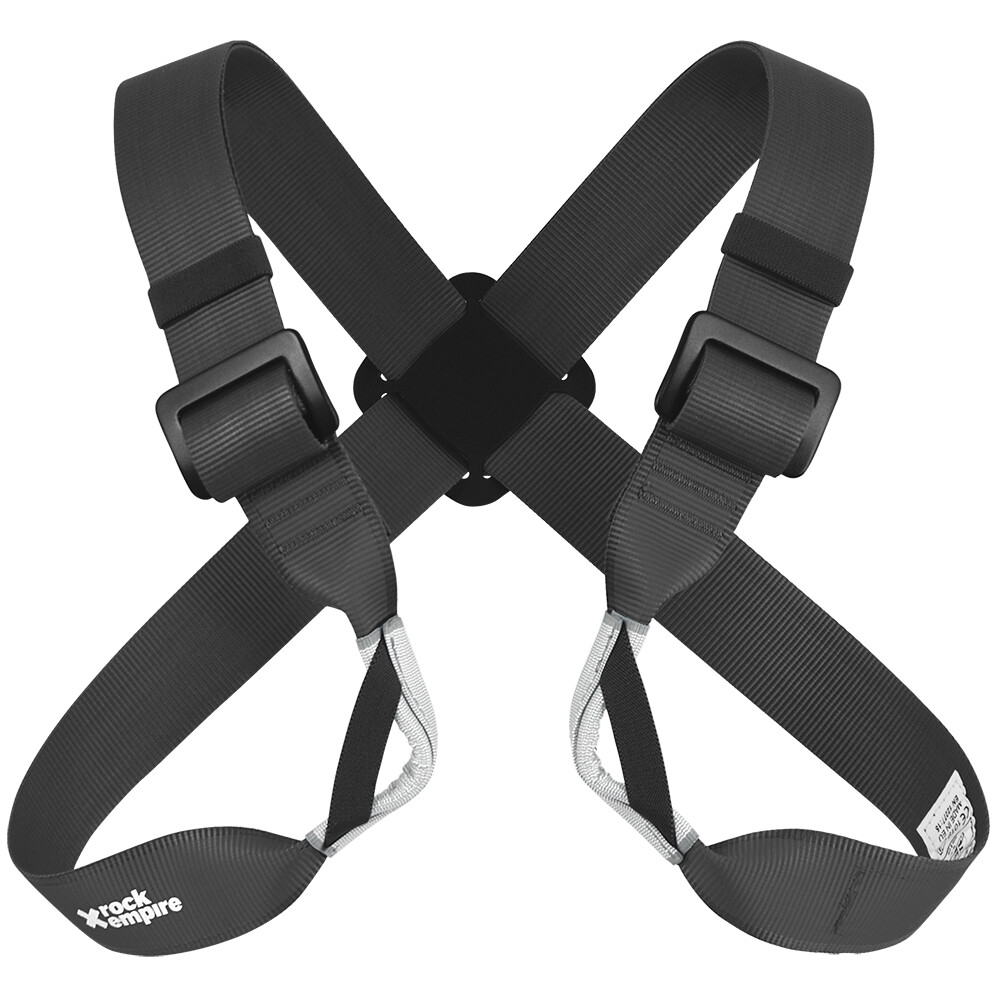 Harnașamentul de piept Eight Vario de la Rock Empire cu curele de umăr reglabile. Utilizat în combinație cu oricare dintre hamurile pentru via ferrata, alpinism și pereți mari.