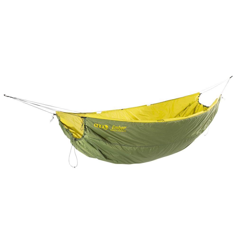 Izolația termică Ember UnderQuilt de la ENO este"sacul de dormit" pentru hamacul dumneavoastră. Este fabricat din două straturi de izolație sintetică care captează și reține căldura corpului. Acest lucru vă permite să dormiți confortabil în hamac chiar și în nopțile mai reci sau cu vânt. În plus, are un finisaj hidrofug, astfel încât să nu fiți surprins de roua de dimineață sau de ploaia ușoară. Underquilt are, de asemenea, cleme complet reglabile, făcându-l compatibil cu orice hamac ENO (cu excepția modelului SkyLoft).