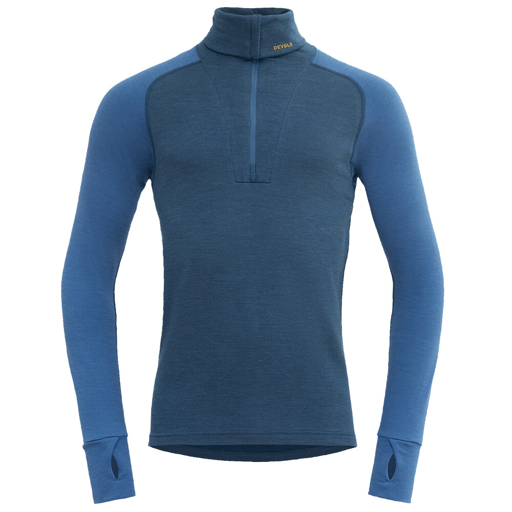 Pulover pentru bărbați Expedition Merino Silk Zip de la compania norvegiană Devold cu funcție Aquaduct.