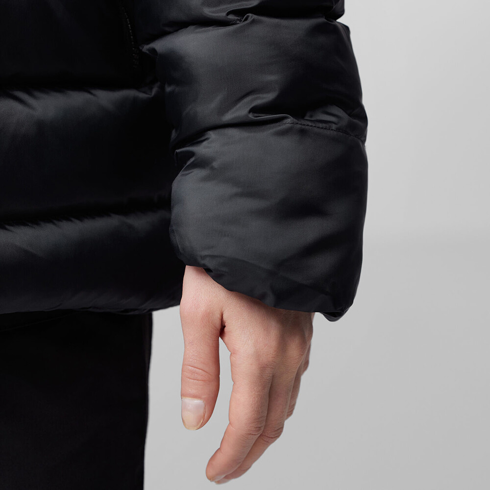 Parka pentru femei este izolată cu puf de gâscă certificat cu umplutură de 800 cuin tratat cu un tratament special HyperDry™ care respinge umezeala și își păstrează proprietățile izolatoare.