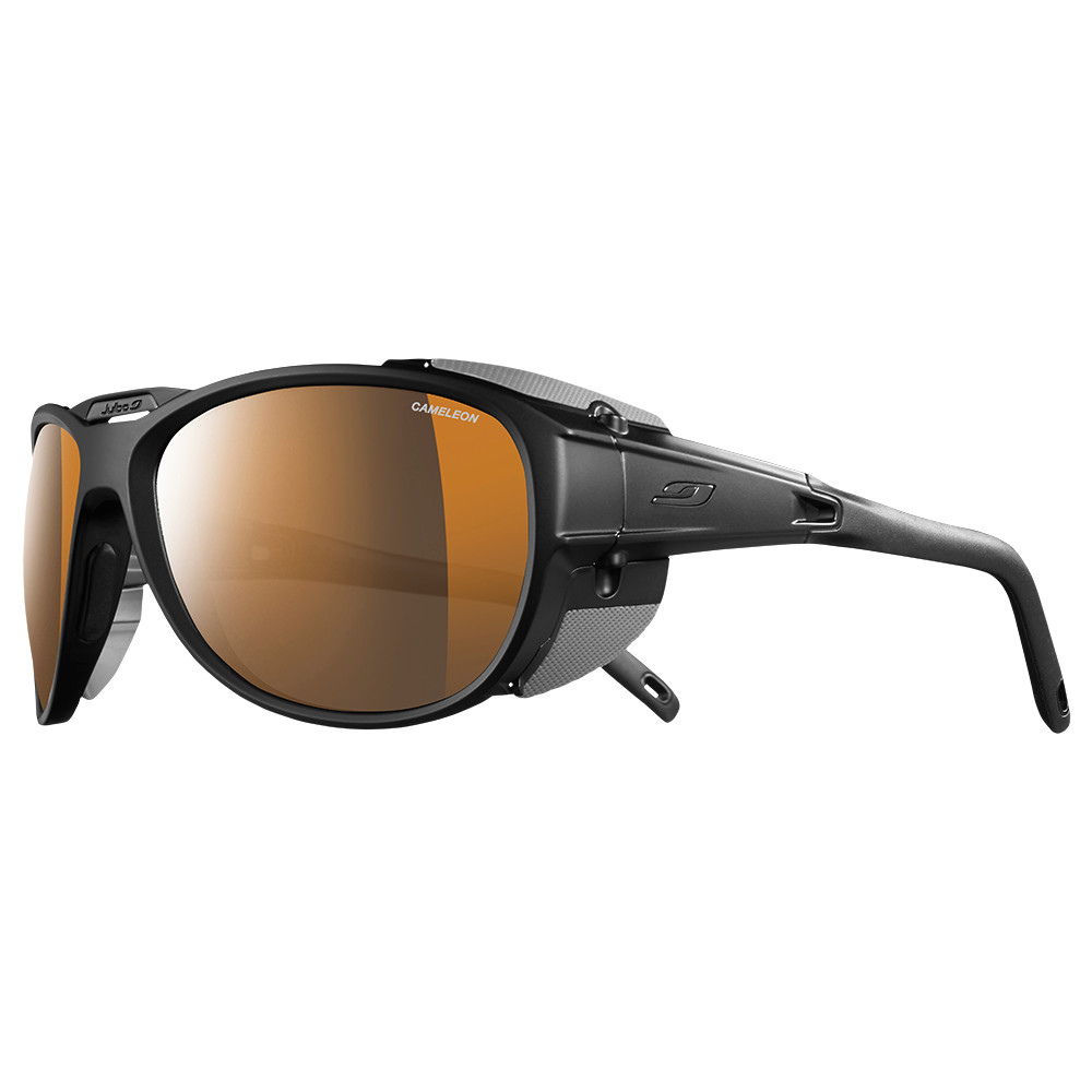 Ochelarii de soare Julbo Camino glacier sunt făcuți pentru drumeții, alpinism și schi la altitudini mari. Ei au scuturi laterale detașabile pentru protecția ochilor și a părților laterale și lentile polarizate Spectron HD3.