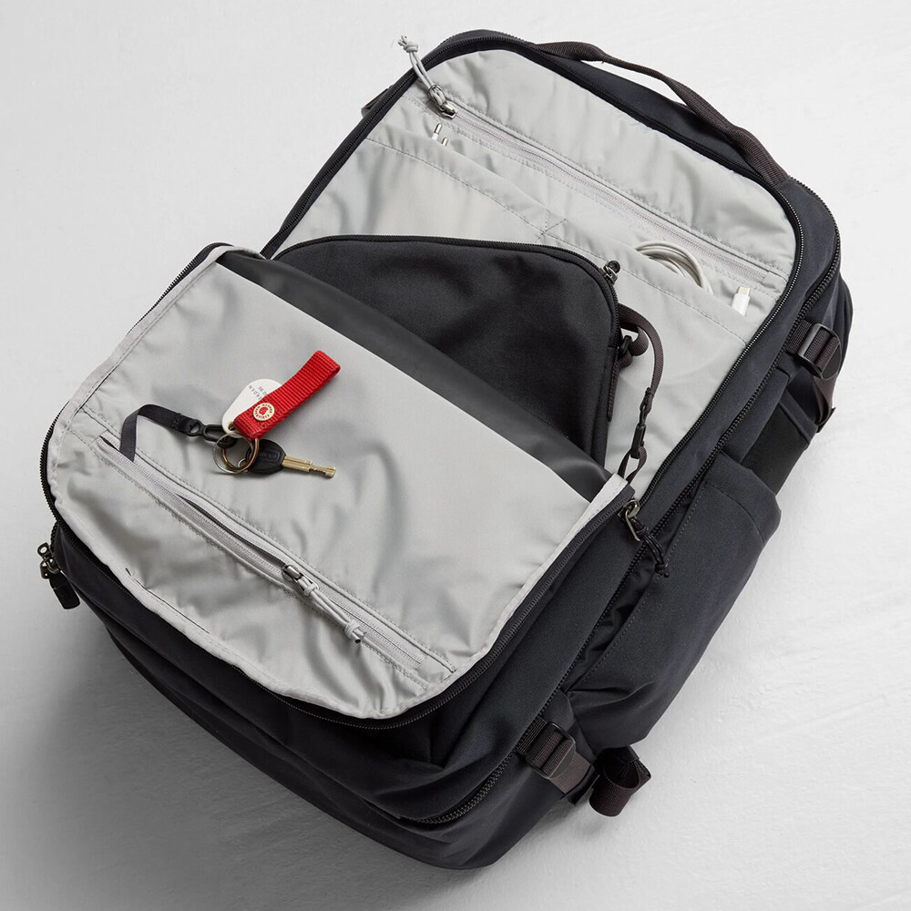 Färden Carry-On Pack este un rucsac de călătorie durabil de la Fjällräven. Dimensiunile sale îndeplinesc cerințele tuturor companiilor aeriene importante ca bagaj de mână. Are o mulțime de compartimente de depozitare cu fermoar. Buzunarul căptușit pentru laptop este cel mai aproape de spate. Compartimentul principal foarte spațios are separatoare interne cu fermoar pentru a păstra lucrurile într-o ordine mai bună. Compartimentul frontal este din nou cu buzunare interne (2 cu fermoar), plus există o geantă crossbody inserată pentru elementele esențiale de călătorie, cum ar fi un pașaport sau un portofel.