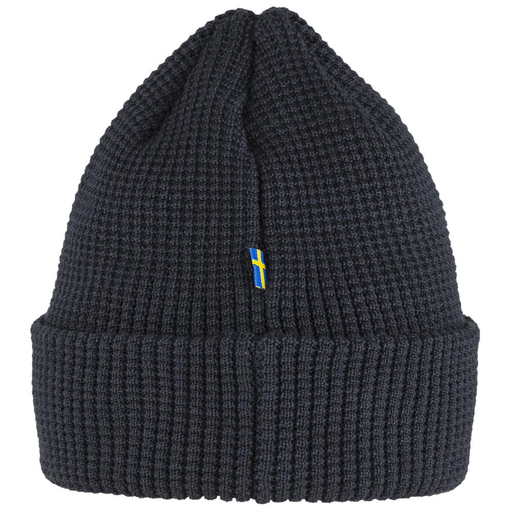 Structura gofrată a țesăturii tricotate cu o margine largă pliabilă se adaptează perfect la orice formă a capului. Poliesterul este moale și respirabil. Un logo mic împodobește designul simplu.