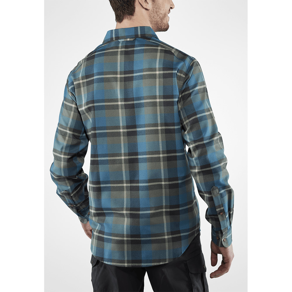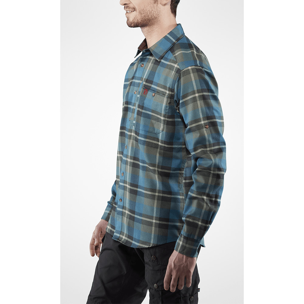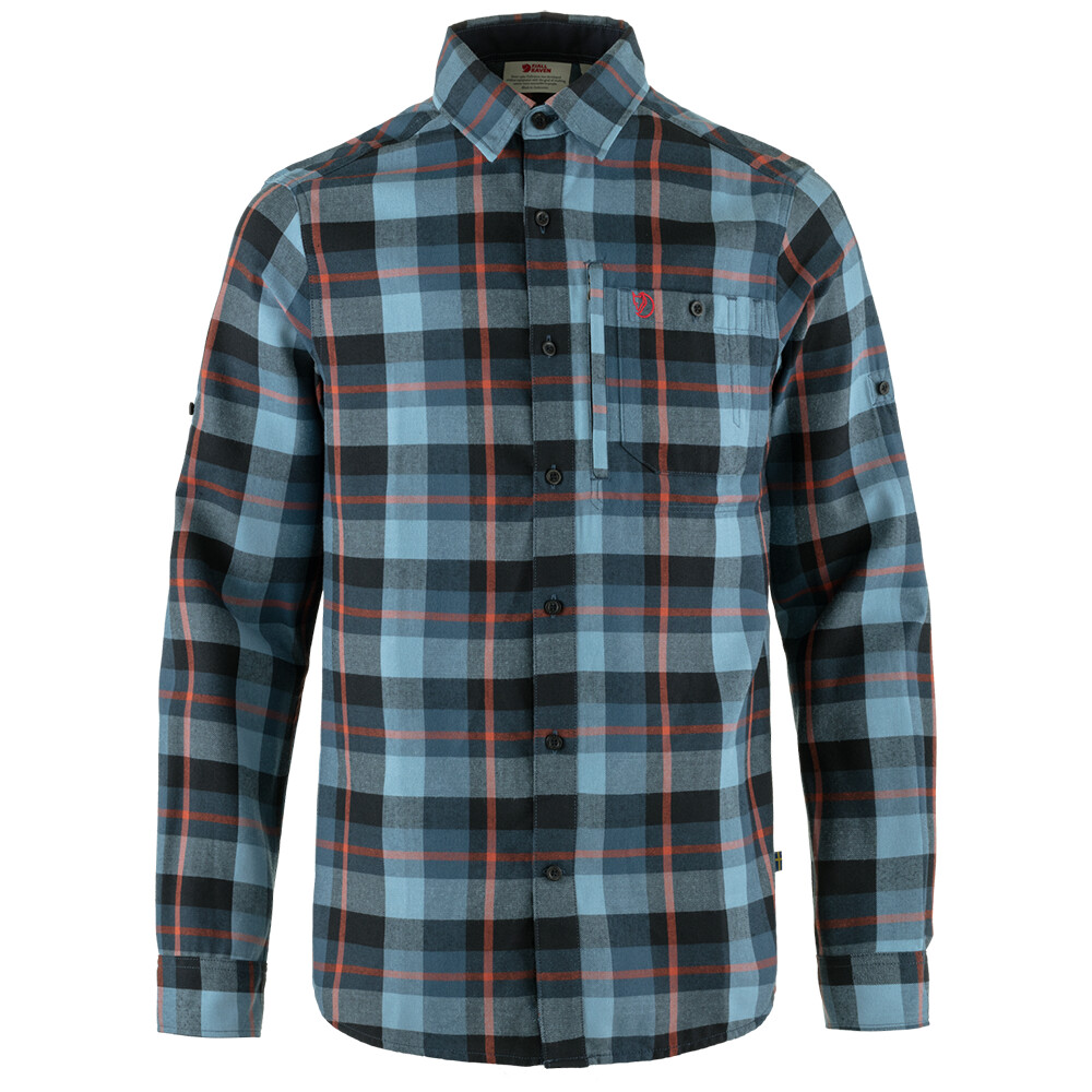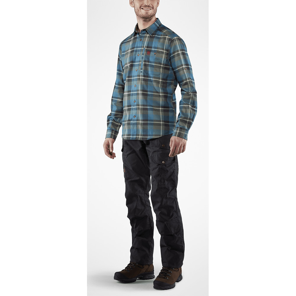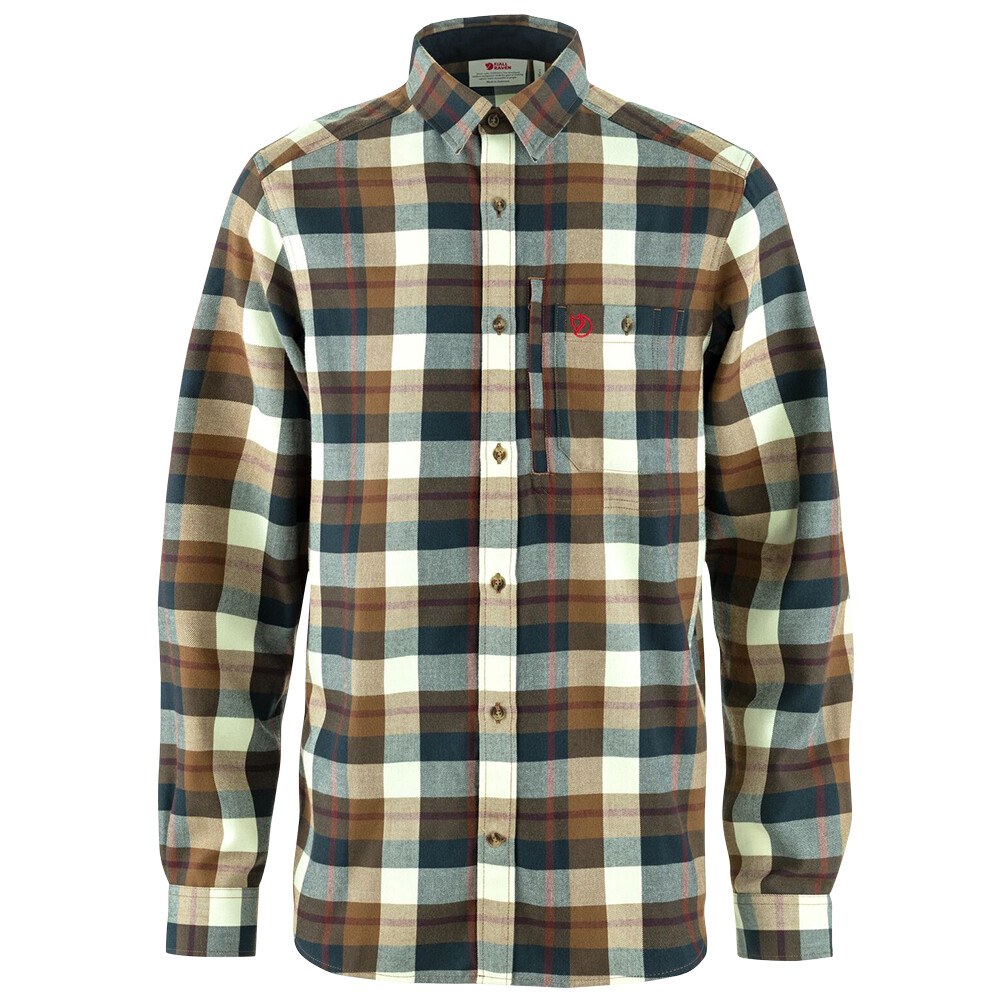 Cămașă de flanel pentru bărbați Fjällräven pentru muncă și timp liber. Material confortabil, mâneci răsucite, buzunare la piept cu nasturi și fantă pentru pixuri.