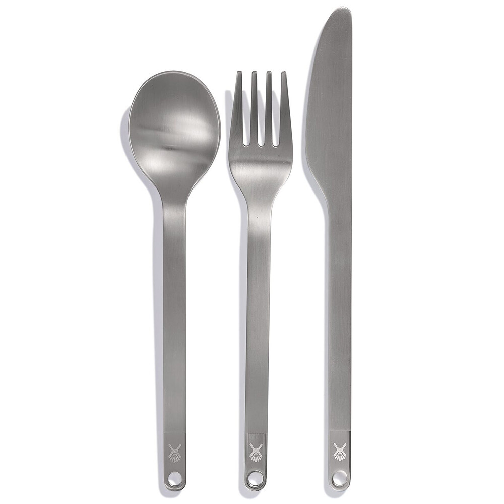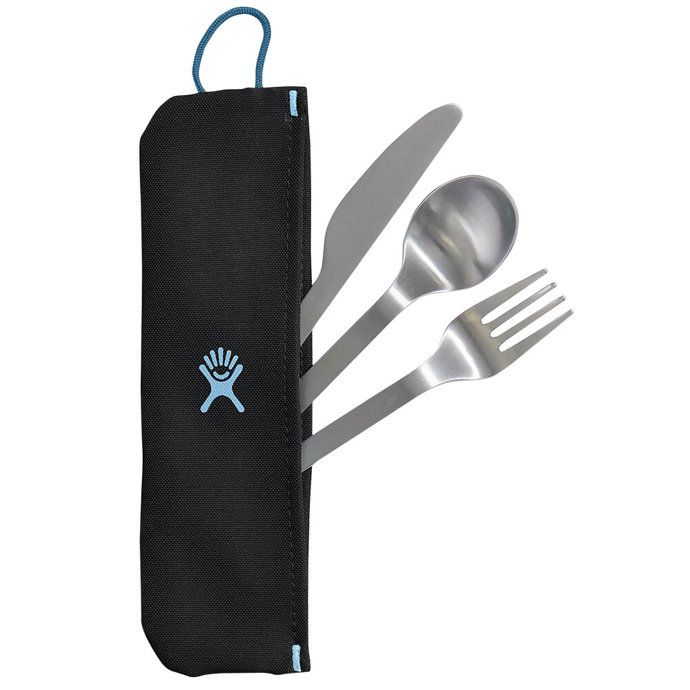 Setul de tacâmuri HydroFlask este un accesoriu util pentru bucătăria dvs. în aer liber. Tacâmurile sunt fabricate din oțel inoxidabil durabil, cu o cutie de transport practică. Cuțitul are o lamă zimțată care taie bine prin diferite tipuri de alimente (produse de patiserie, fructe, legume...).