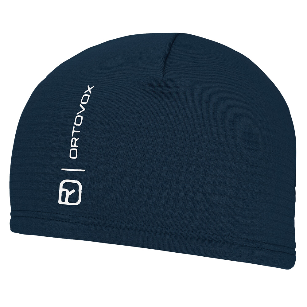Materialul fleece are o lână merino pufoasă și fină pe interior și o țesătură sintetică rezistentă mecanic pe exterior. Are o structură de plasă care îmbunătățește foarte mult suprafața, maximizând viteza de uscare și capacitatea de absorbție a transpirației. Canalele de aer create de această rețea, combinate cu multitudinea de microcapsule de aer ale lânii merino, vă garantează o termoreglare perfectă în condiții uscate și umede. Datorită extensibilității ridicate a materialului, se așează bine pe cap și păstrează căldura prețioasă aproape. Merino este în mod natural antibacterian. Astfel, vă puteți bucura de senzația de prospețime a acestui material fără nicio grijă, chiar și în timpul skitouring-ului de mai multe zile.