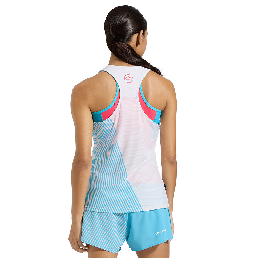 Tank-ul Flow pentru femei de la La Sportiva este o alegere excelentă pentru alergări lungi și alergări pe poteci înviorate pe vreme caldă.
