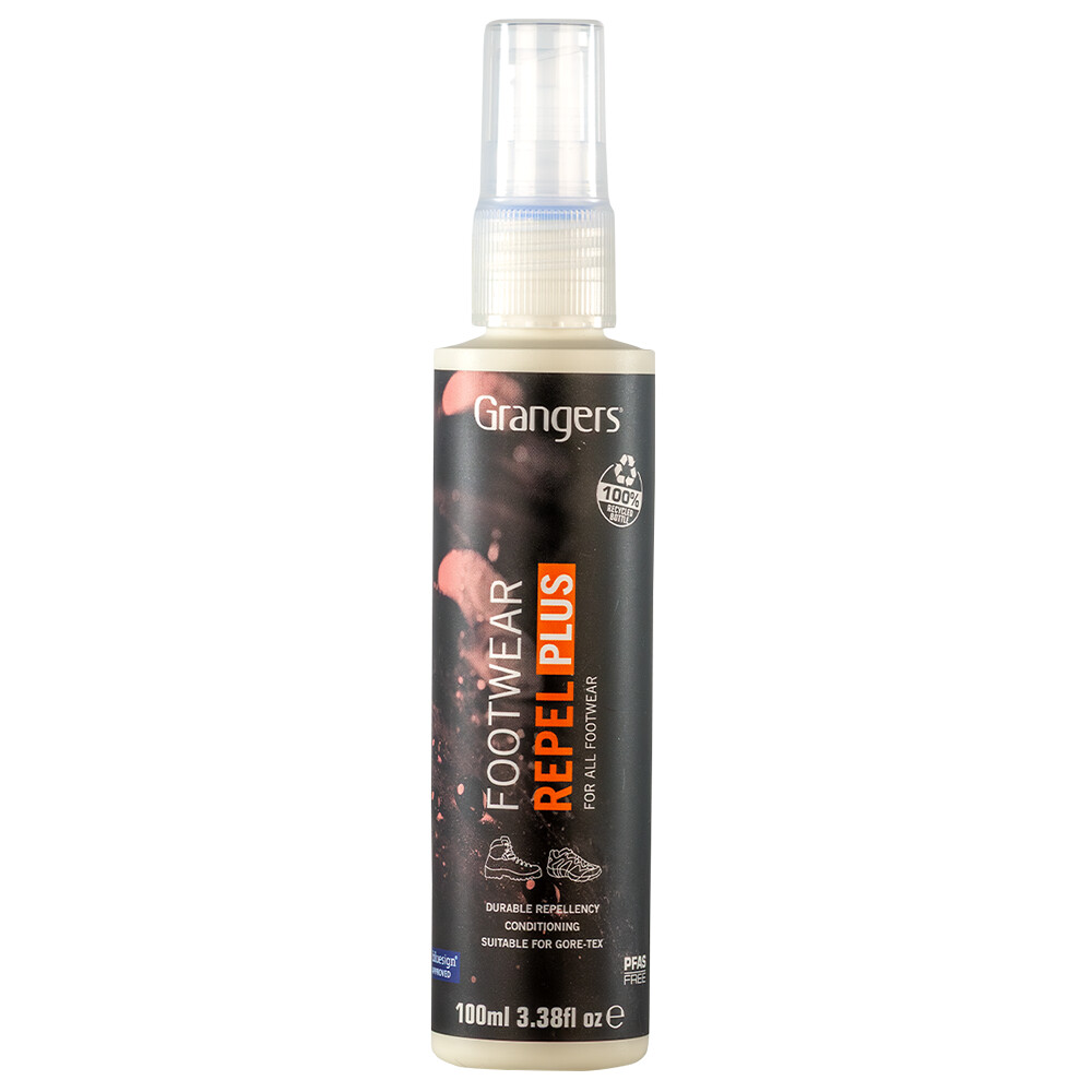 Spray de impregnare pentru a restabili impermeabilitatea încălțămintei dumneavoastră Footwear Repel Plus de la Grangers. Potrivit pentru toate materialele (piele, nubuc, piele întoarsă, fețe textile). Menține respirabilitatea și previne apariția petelor pe încălțăminte.