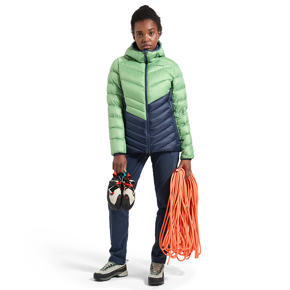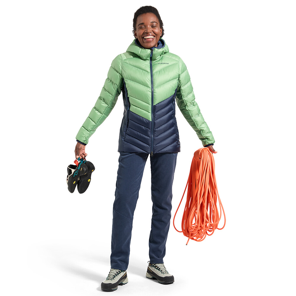 Jacheta La Sportiva Women's Forest Down Jacket are un echilibru foarte bun între împachetabilitate și căldură, fiind în același timp practică și confortabilă. Așa cum se întâmplă cu jachetele de puf, pliabile într-un pachet mic, aceasta va deveni rapid partenerul tău de încredere, indiferent dacă îi folosești căldura pe pârtii, în drumeții, la jamming sau pentru uzura de zi cu zi.