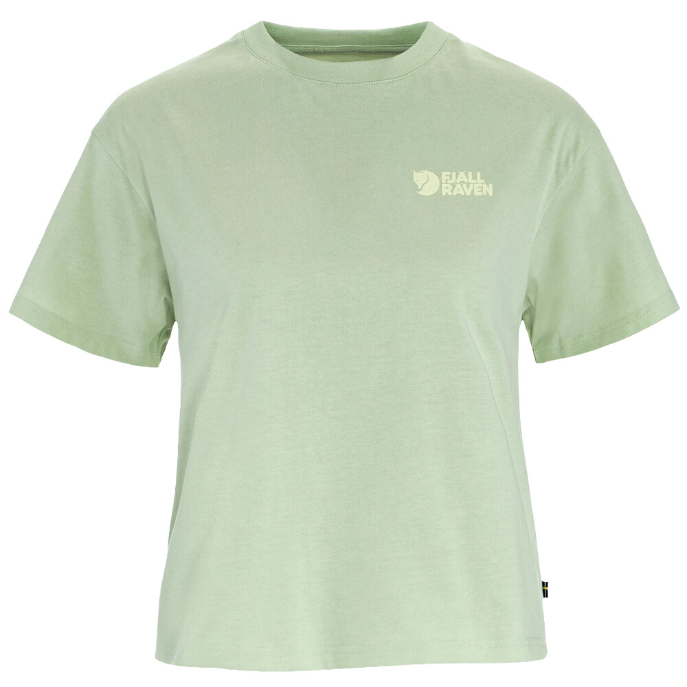 Tricoul pentru femei Fjällräven este ideal atât pentru zilele casual, cât și pentru activitățile ușoare. Este fabricat din bumbac organic plăcut, are o croială subțire și un decolteu rotund. Este dominat de un imprimeu subtil de vulpe polară cu flori.