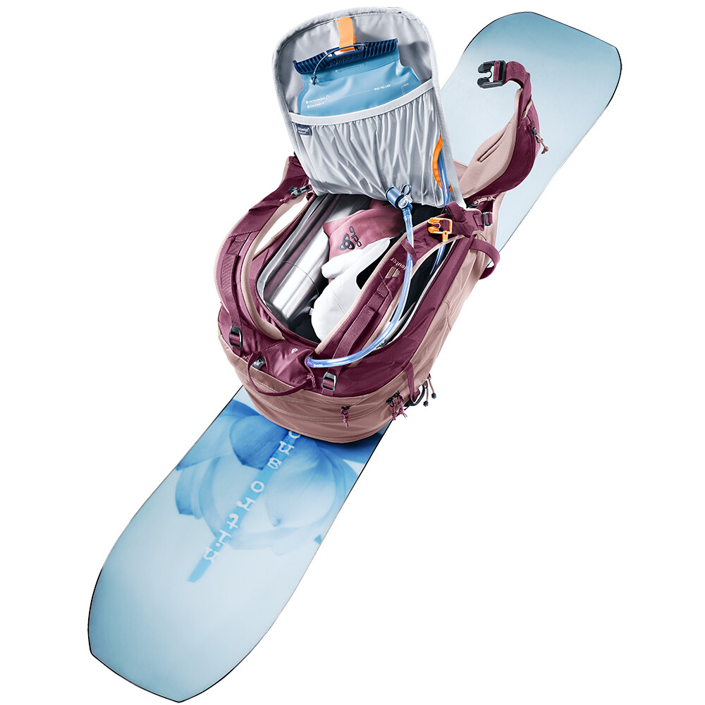 Rucsac pentru femei pentru schi, freeride sau snowshoeing. Oferă posibilitatea de a mări volumul cu până la 10L. Potrivit pentru excursii de o zi și de mai multe zile. Sistem dorsal pentru spate uscat, intrare posibilă din față și din spate.