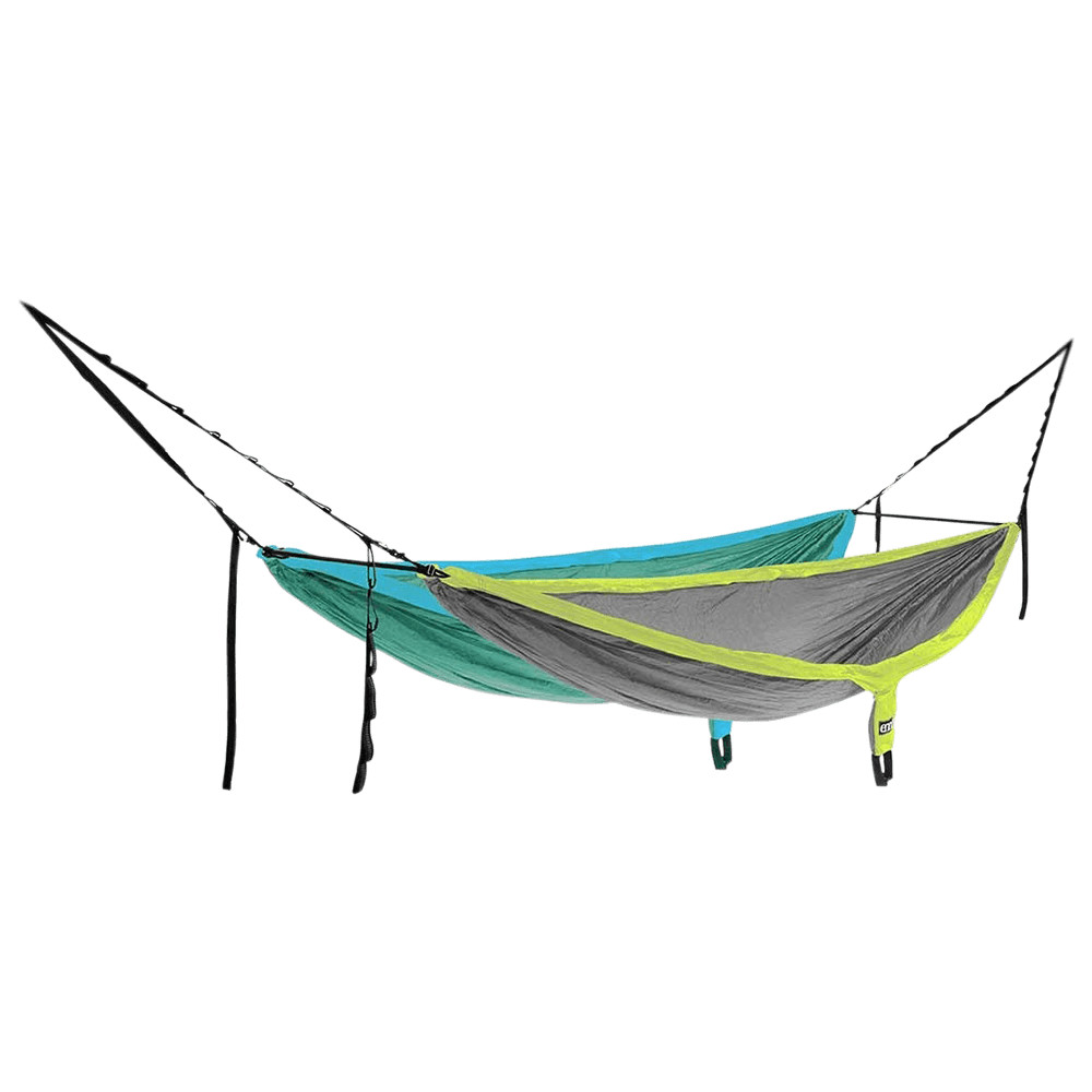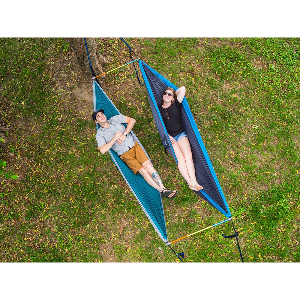 Agățarea a două hamace unul lângă altul de doi copaci nu va mai fi o problemă, datorită acestui sistem de agățare ENO veți fi aproape de colegul alpinist. Este vorba de două bare de împrăștiere între două hamace. Datorită acestui sistem, nu trebuie să găsiți doi copaci cu distanța ideală unul față de celălalt pentru fiecare hamac și veți fi aproape unul de celălalt în același timp.