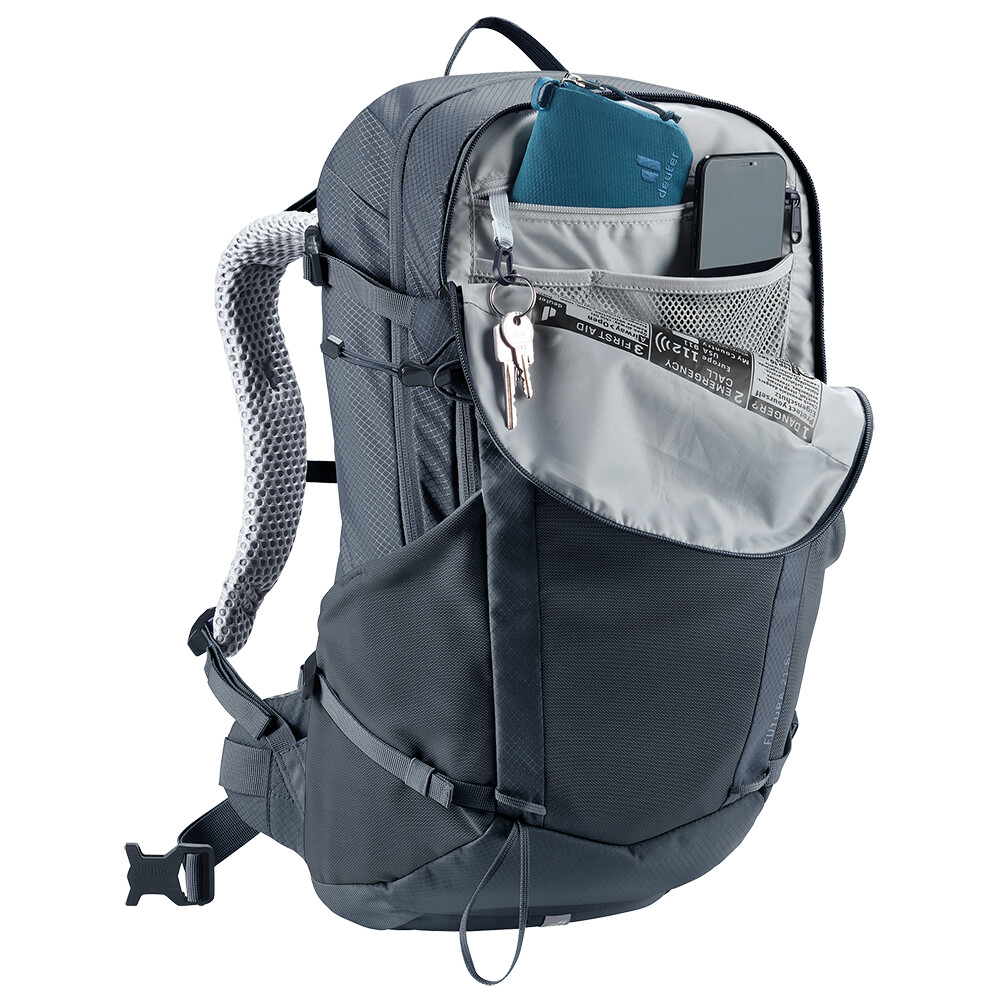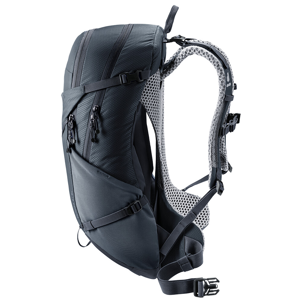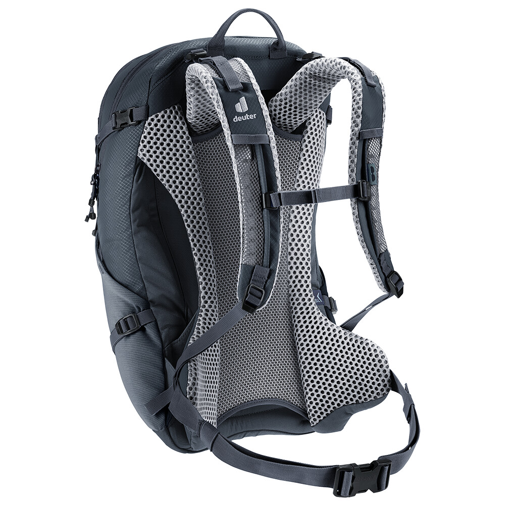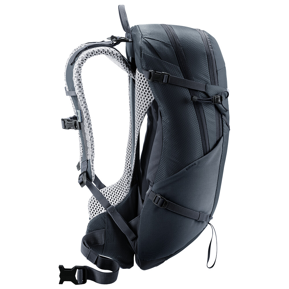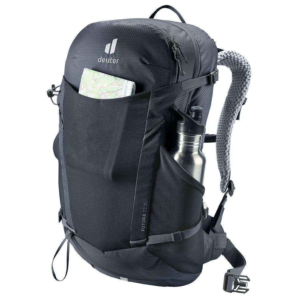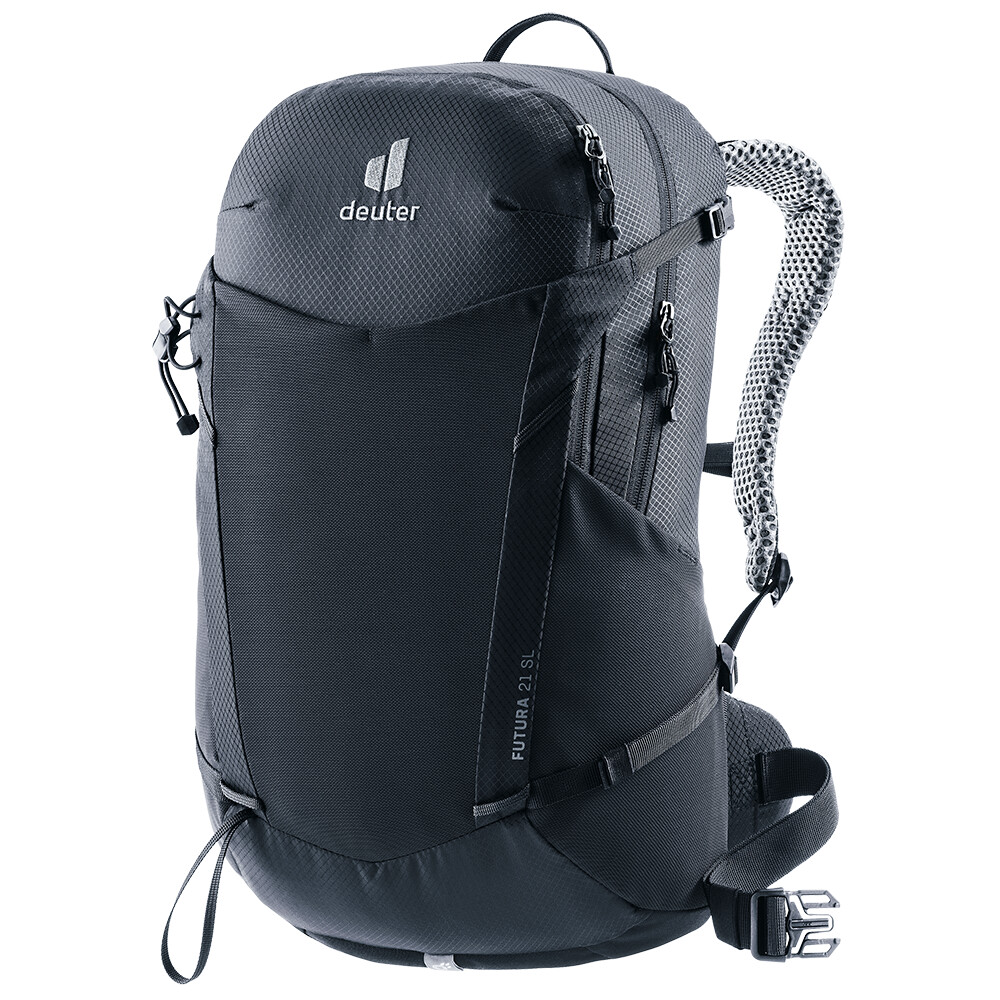 Rucsacul de drumeții Futura 21 SL de la deuter va fi un companion excelent pentru explorare, fie că este vorba de drumeții pe munte sau doar de rătăciri prin pădure. Futura are un sistem de spate format din armătură metalică cu plasă și căptușeală în jurul coloanei vertebrale. Acest lucru asigură o respirabilitate maximă și o distribuție optimă a greutății între umeri și șolduri. Deoarece rucsacul este conceput pentru drumeții de toate tipurile, acesta oferă posibilitatea de a atașa bețe, un piolet, un suport pentru cască și include, de asemenea, un capac de ploaie.