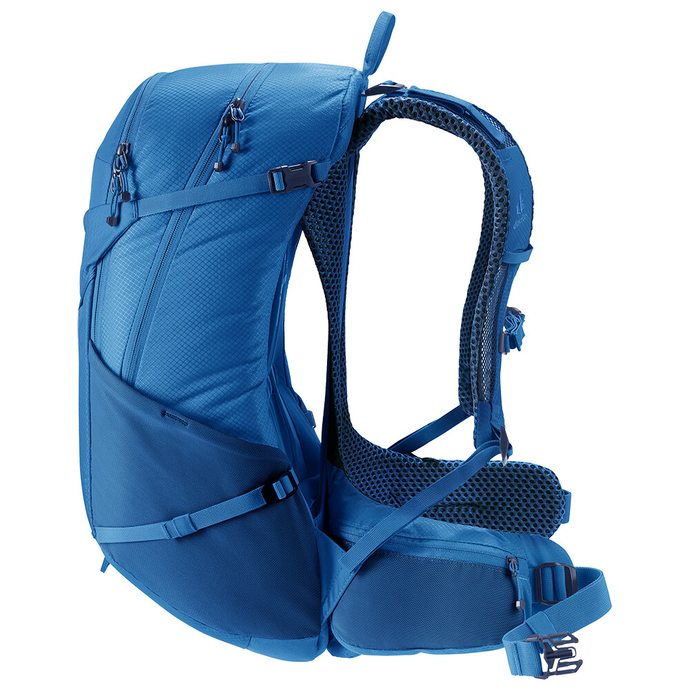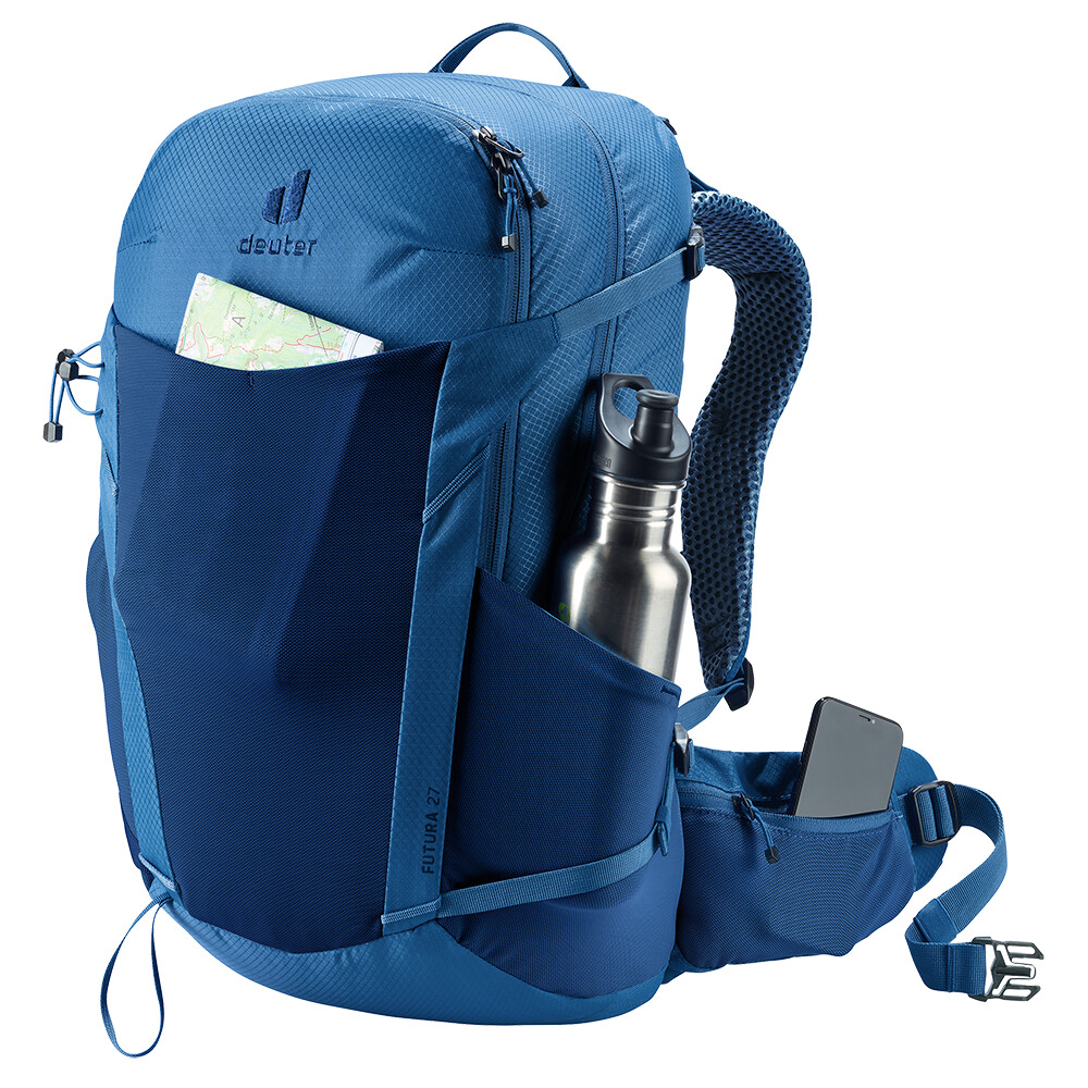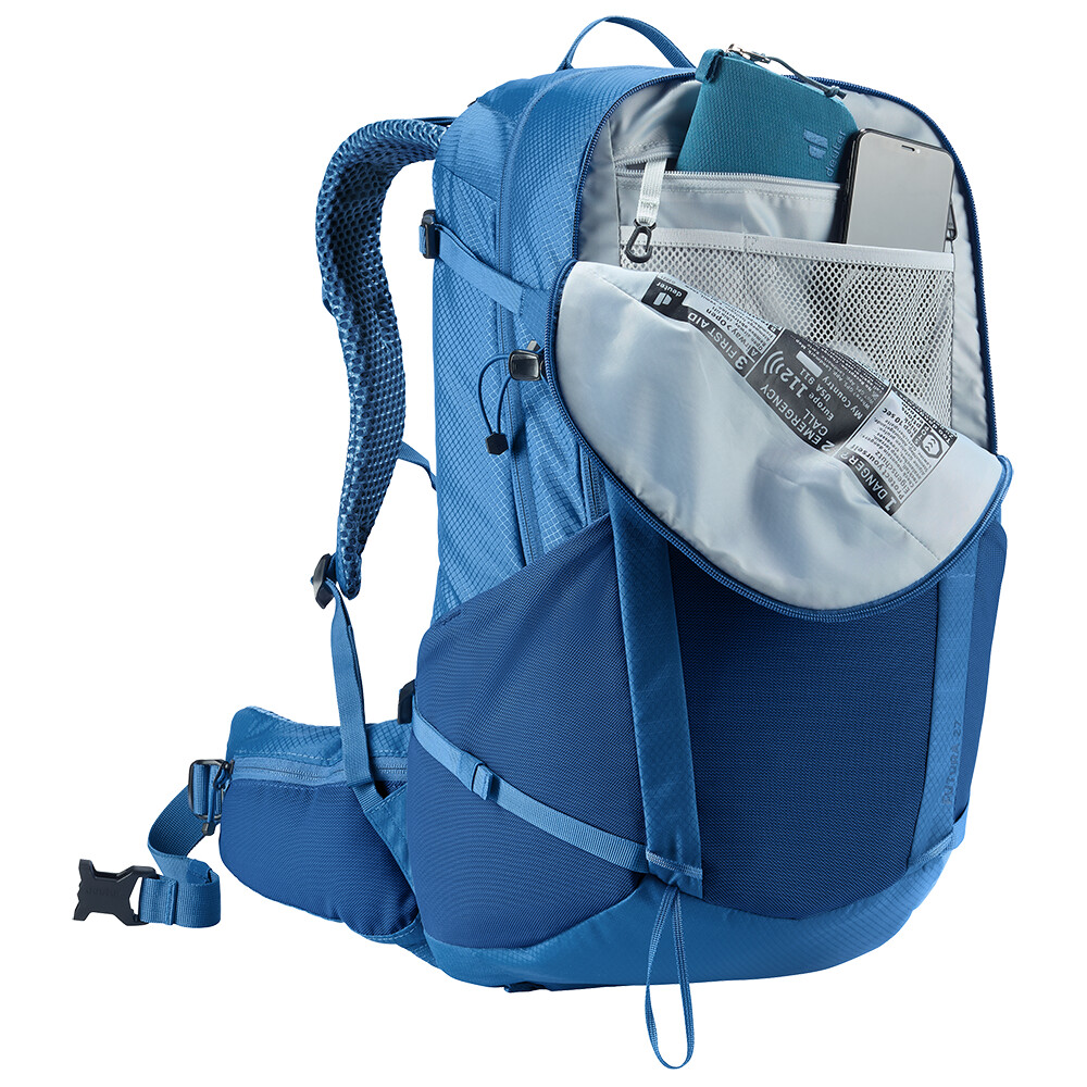 Rucsacul de drumeții Futura 27 de la deuter va fi un companion excelent pentru explorare, fie că este vorba de drumeții pe munte sau doar de rătăciri prin pădure. Futura are un sistem de spate format din armătură metalică cu plasă și căptușeală în jurul coloanei vertebrale. Acest lucru asigură o respirabilitate maximă și o distribuție optimă a greutății între umeri și șolduri. Deoarece rucsacul este conceput pentru drumeții de toate tipurile, acesta oferă posibilitatea de a atașa bețe, un piolet, un suport pentru cască și include, de asemenea, un capac de ploaie.