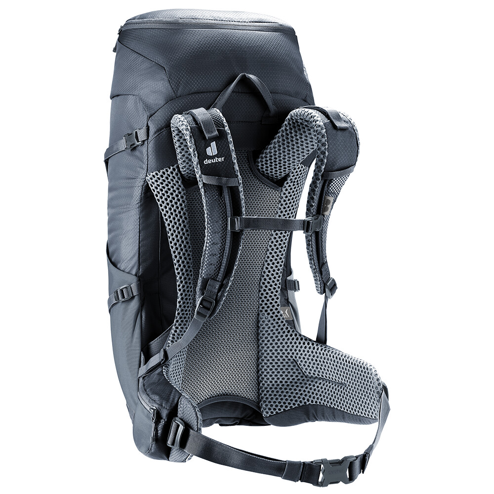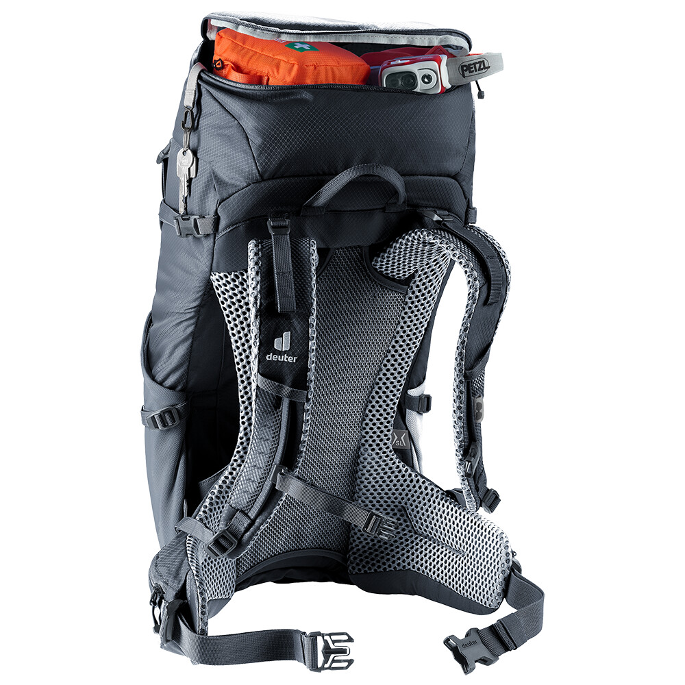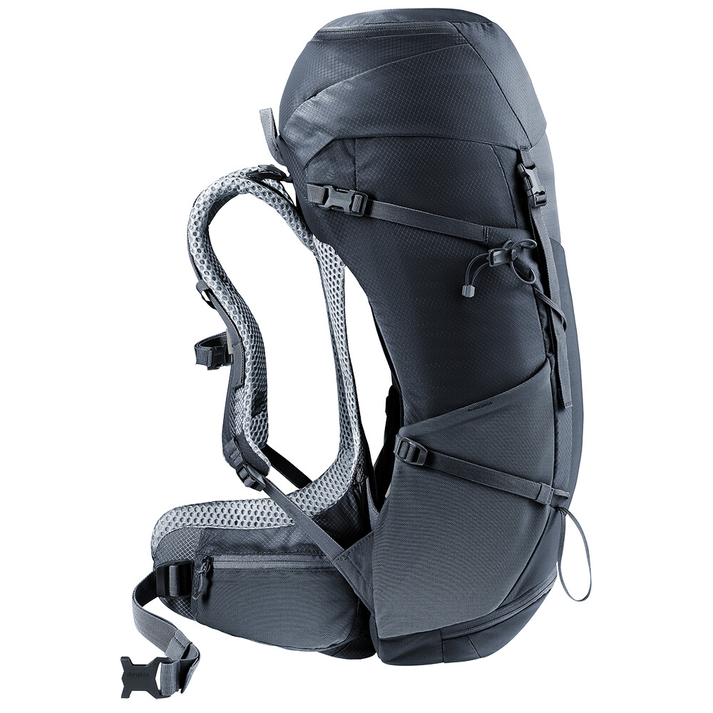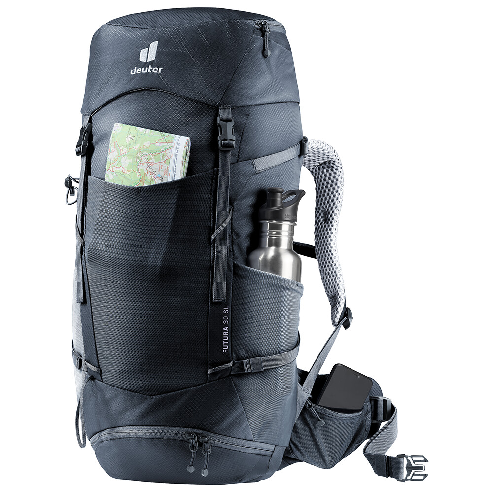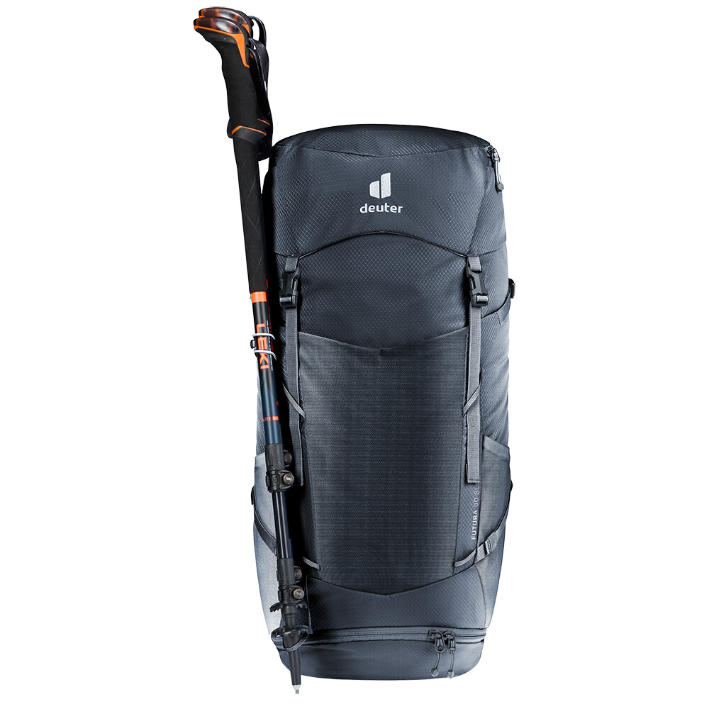 Rucsacul de drumeții Futura 30 SL de la deuter va fi un companion excelent pentru explorare, fie că este vorba de drumeții pe munte sau doar de rătăciri prin pădure. Futura are un sistem de spate format din armătură metalică cu plasă și căptușeală în jurul coloanei vertebrale. Acest lucru asigură o respirabilitate maximă și o distribuție optimă a greutății între umeri și șolduri. Deoarece rucsacul este conceput pentru drumeții de toate tipurile, acesta oferă posibilitatea de a atașa bețe, un piolet, un suport pentru cască și include, de asemenea, un capac de ploaie. Pentru claritate în echipamentul ambalat, rucsacul are două compartimente separate. Umplerea superioară cu închidere cu cataramă este completată cu un fermoar lung în formă de U în față.