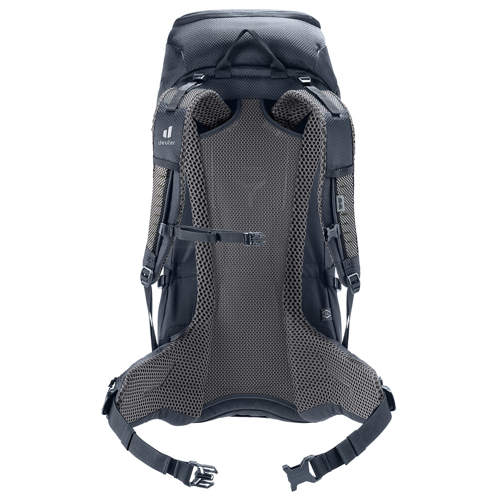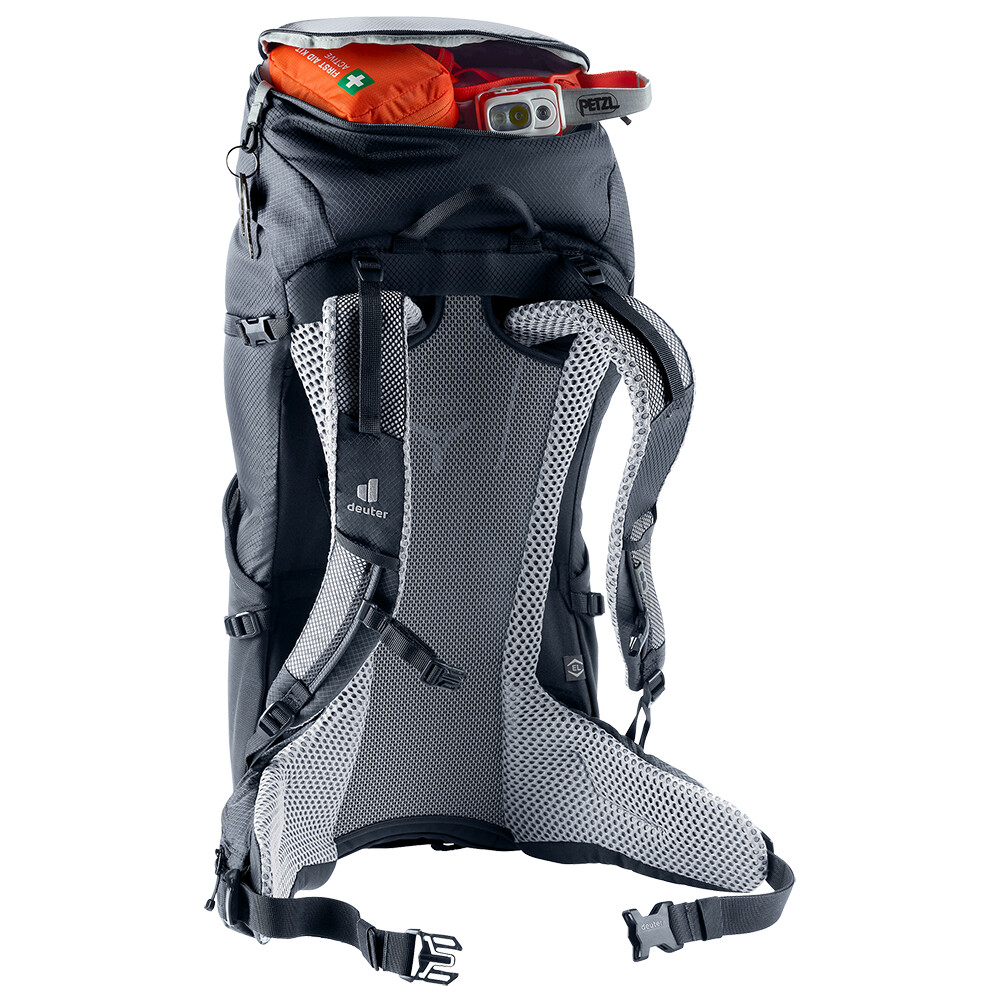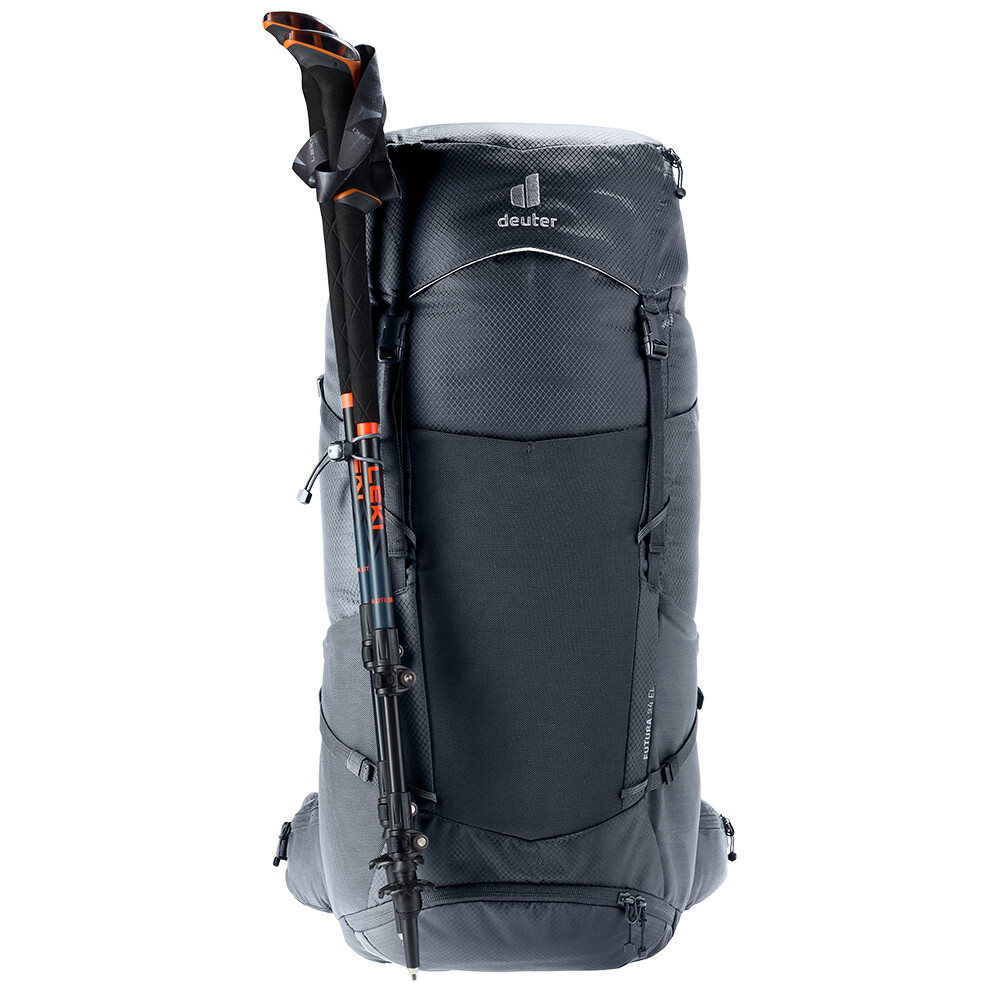 Rucsacul pentru drumeții Futura 34 EL de la deuter va fi un companion excelent pentru explorare, fie că este vorba de drumeții pe munte sau doar de rătăciri prin pădure. Futura are un sistem de spate format din armătură metalică cu plasă și căptușeală în jurul coloanei vertebrale. Acest lucru asigură o respirabilitate maximă și o distribuție optimă a greutății între umeri și șolduri. Deoarece rucsacul este conceput pentru drumeții de toate tipurile, acesta oferă posibilitatea de a atașa bețe, un piolet, un suport pentru cască și include, de asemenea, un capac de ploaie. Pentru claritate în echipamentul ambalat, rucsacul are două compartimente separate. Umplerea superioară cu închidere cu cataramă este completată cu un fermoar lung în formă de U în față. Modelul EL are o lungime extinsă a spatelui și este potrivit pentru figuri de la 185 cm.