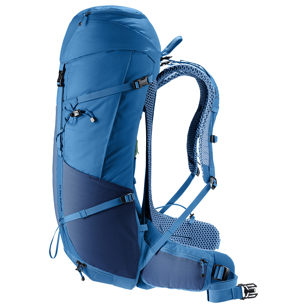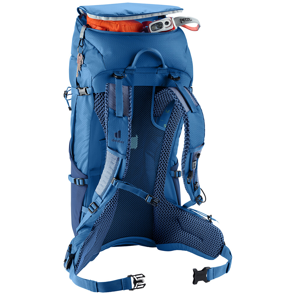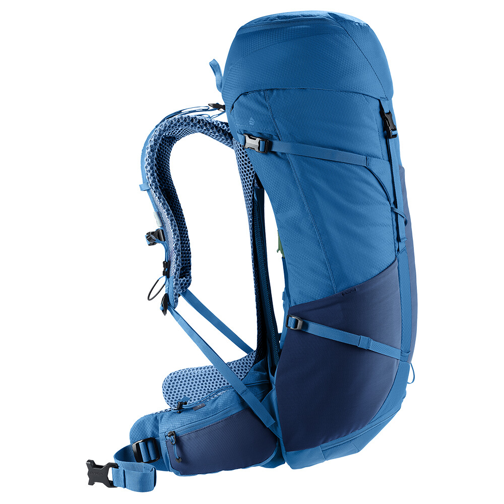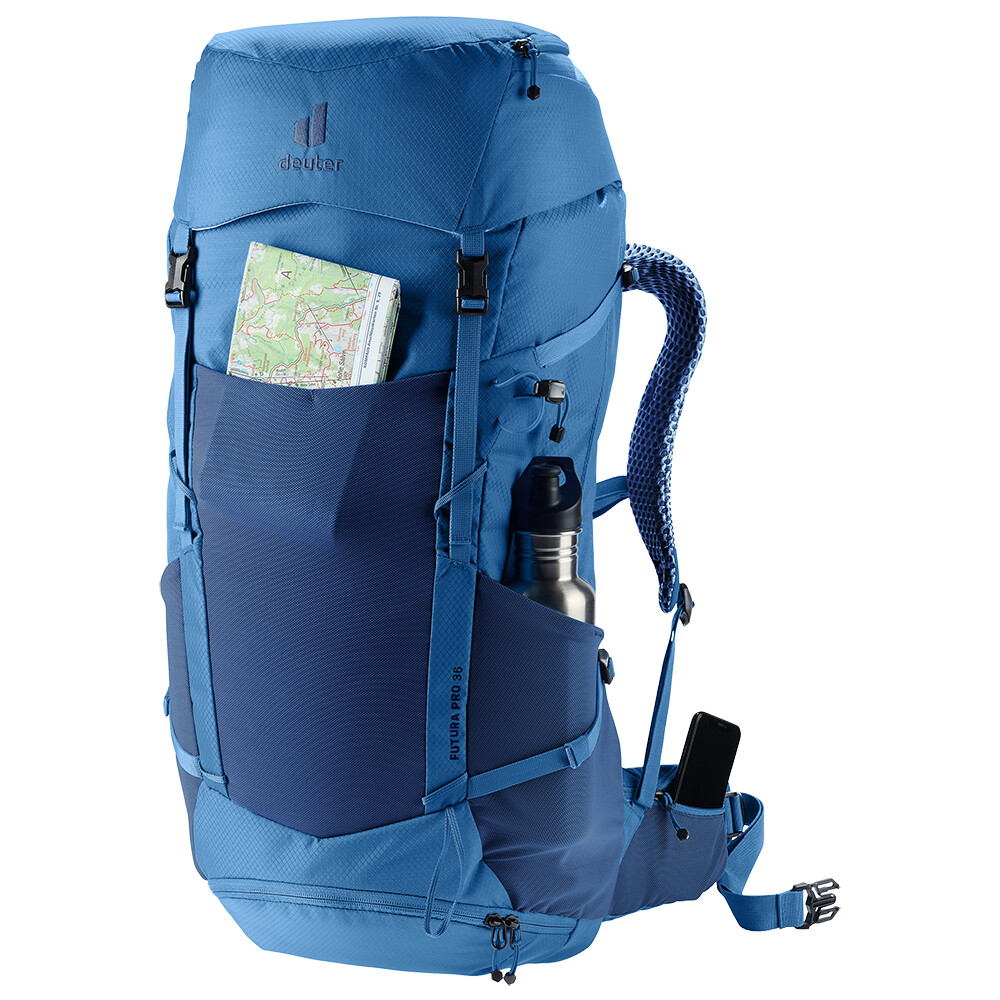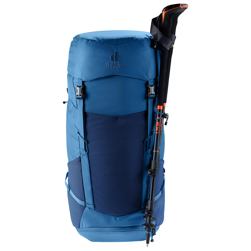 Rucsacul Futura Pro 36 de la deuter va fi un companion excelent pentru explorare, fie că este vorba de drumeții pe munte sau doar de rătăciri prin pădure. Futura are un sistem de spate format din armătură metalică cu plasă și căptușeală în jurul coloanei vertebrale. Acest lucru asigură o respirabilitate maximă și o distribuție optimă a greutății între umeri și șolduri. În plus, gama Futura Pro dispune de sistemul VariClick, care vă permite să reglați una dintre cele cinci lungimi specifice ale spatelui. Deoarece rucsacul este conceput pentru drumeții de toate tipurile, acesta oferă posibilitatea de a atașa bețe, un piolet, un suport pentru cască și include, de asemenea, un capac de ploaie. Pentru claritate în echipamentul împachetat, rucsacul are două compartimente separabile care pot fi combinate într-un compartiment mare, dacă este necesar.