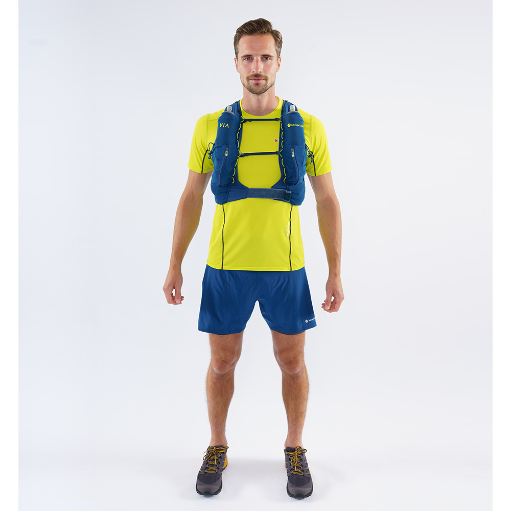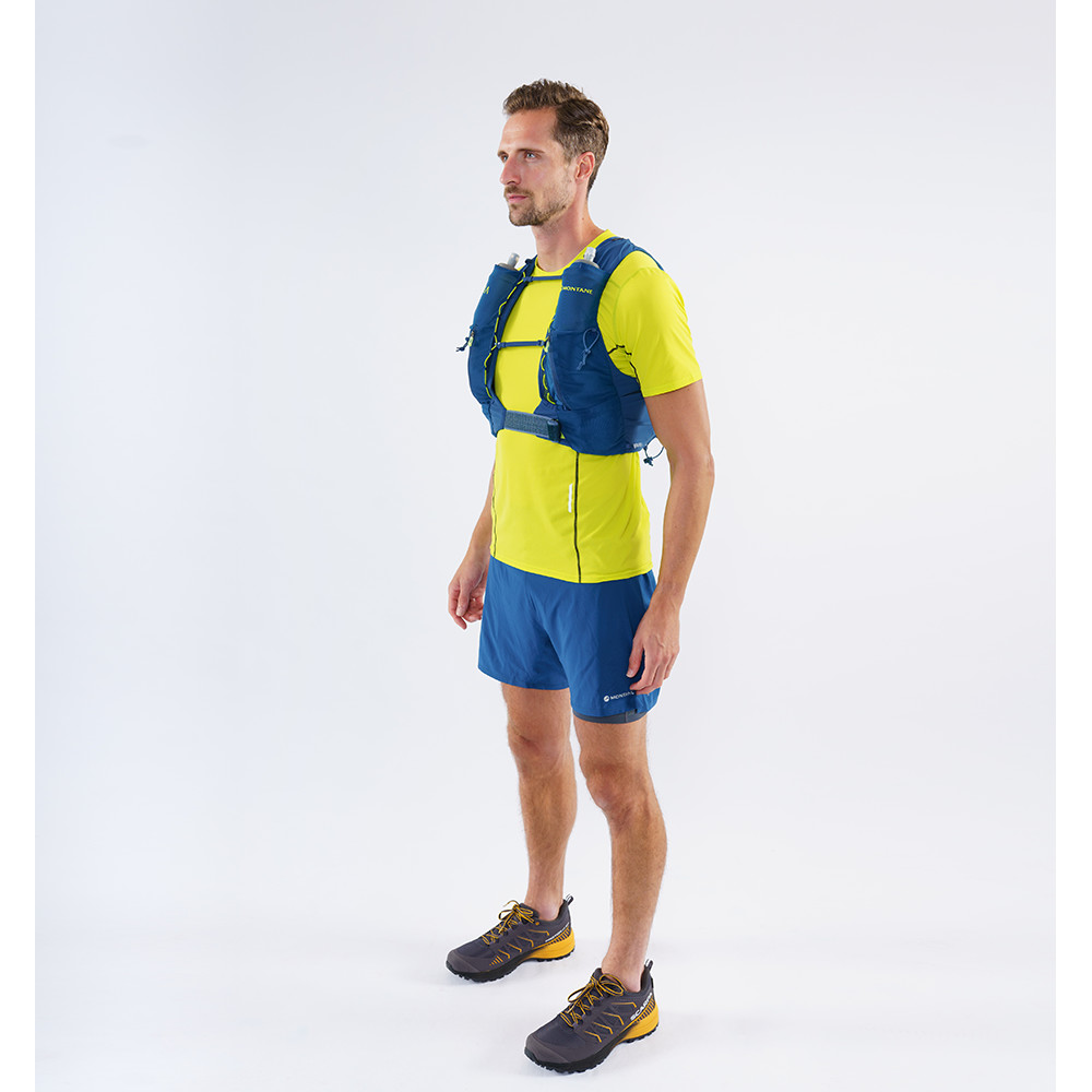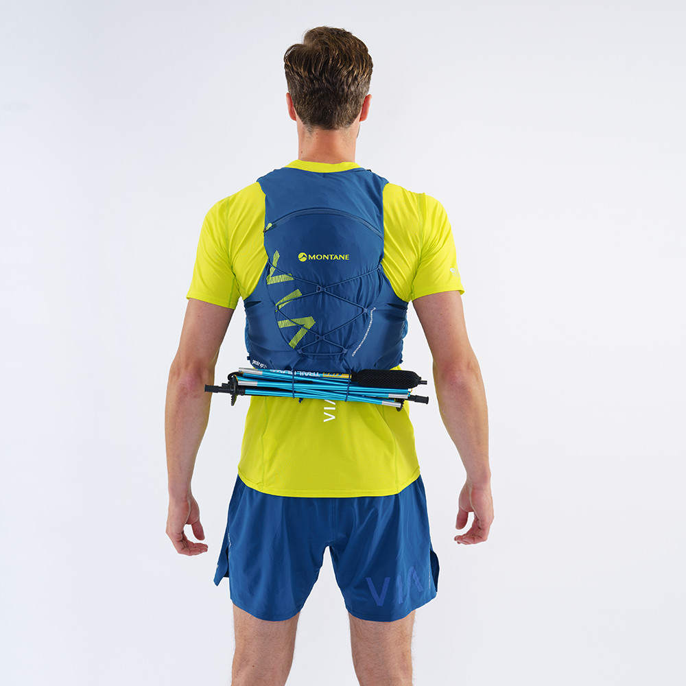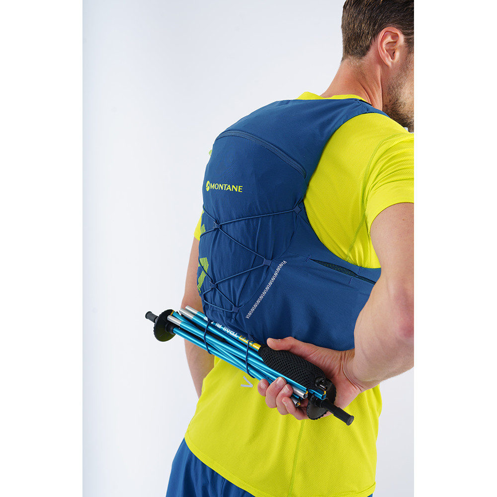 Vesta de alergare Gecko VP 12 de la Montane oferă o capacitate de 12 litri, inclusiv buzunare. Vesta are o curea dublă reglabilă pentru piept. Pentru a vă potoli setea, veți avea două sticle pe curelele de umăr incluse. Cei care au nevoie să își refacă energia o vor împacheta în buzunarele de pe laterale. Există bucle pe părțile laterale pentru a plia bastoanele de alergare sau pentru a le atașa la spate.