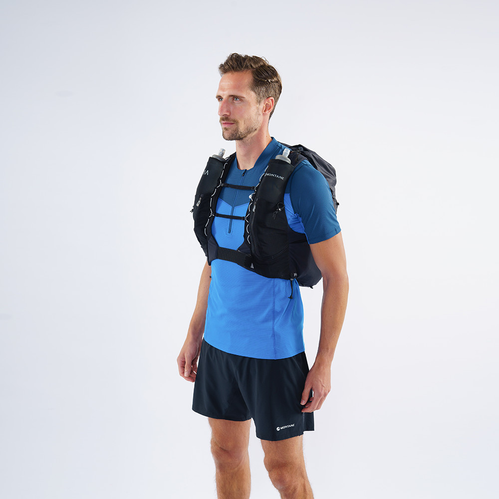 Vesta de alergare Montane Gecko VP 20 are buzunare de 20 de litri și o curea toracică dublă reglabilă. Pentru a-ți potoli setea, vei avea două sticle pe curelele de umăr incluse. Cei care au nevoie să își refacă energia o vor împacheta în buzunarele de pe laterale. Există bucle pe părțile laterale pentru a plia bastoanele de alergare sau pentru a le atașa la spate.