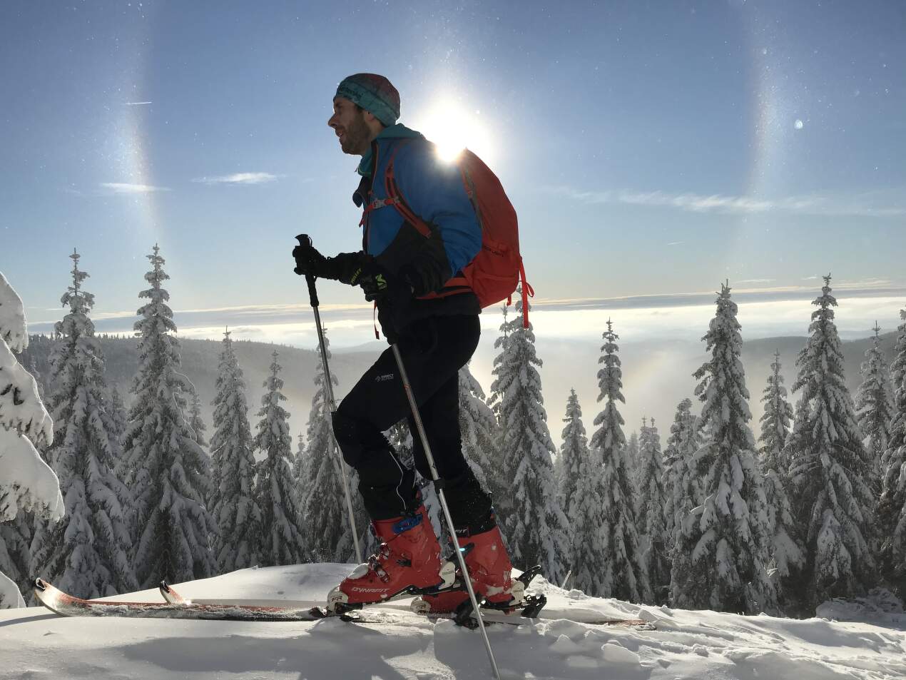 În general, materialele sintetice sunt mai potrivite pentru performanță și evenimente sportive mai scurte, în timp ce materialele naturale sunt mai potrivite atunci când confortul, căldura și purtarea pe termen lung sunt priorități. Desigur, experiența și prioritățile personale sunt cele mai bune. Eu personal nu am nicio problemă în a apela la materiale sintetice și merino atunci când alerg pe vreme rece. Depinde de circumstanțe: uscat/umed și de traseul planificat: scurt rapid/lung mai lent. Iau decizii similare atunci când fac schi-alpinism. Dar întotdeauna aleg merino dacă merg la schi alpin. În acel moment mă ocup doar de diferența de greutate în funcție de vreme.