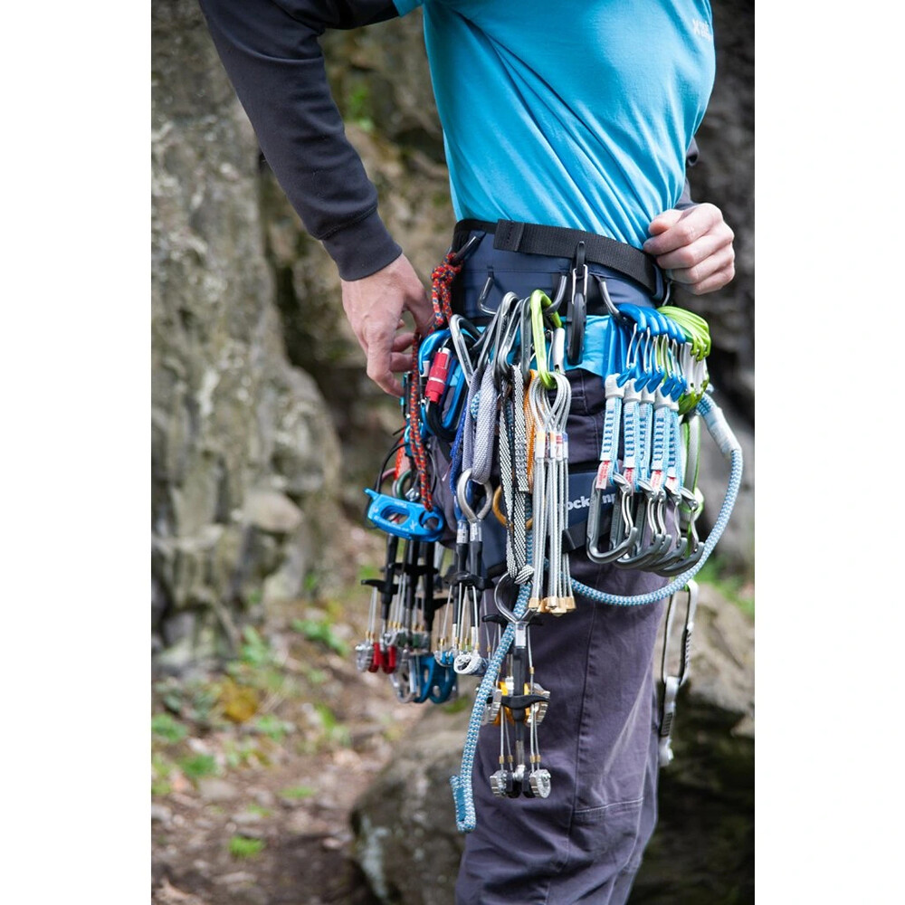 - 7 bucle de material durabile vă permit să transportați o cantitate mare de material de alpinism și să îl sortați și organizați clar în timpul ascensiunii