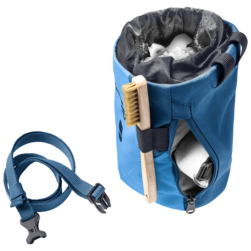 Sacul Gravity Chalk Bag II L de la deuter este un sac de magneziu mare, potrivit pentru alpiniștii cu mâini mai mari și degete mai lungi. Punctele forte ale genților din seria Gravity includ design ergonomic, materiale premium, închidere fiabilă. Geanta Gravity II L este potrivită atât pentru escaladă pe perete, cât și pe stâncă.