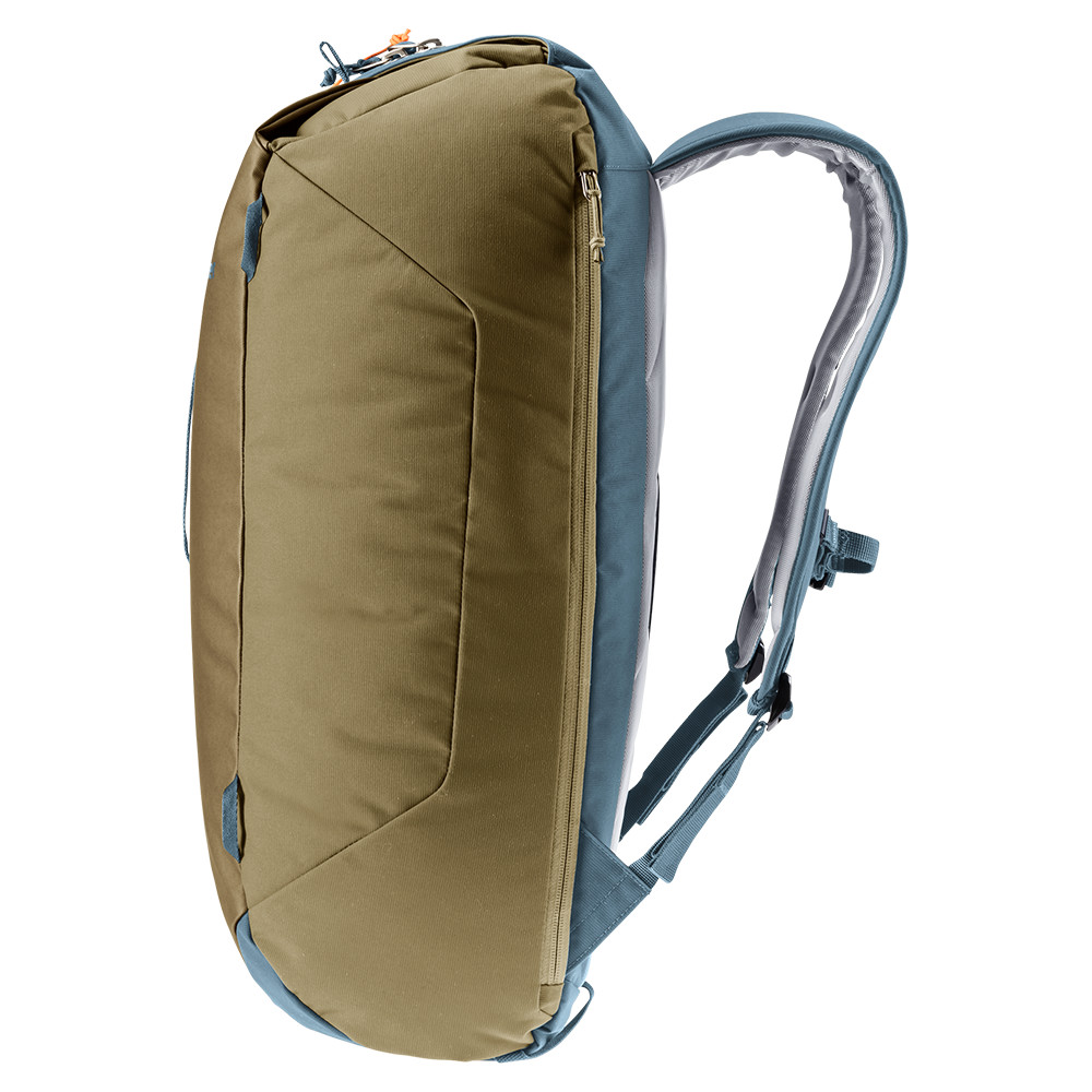 Rucsac de alpinism cu închidere superioară roll-top și intrare laterală cu fermoar. Poate transporta frânghie, pioleți, bețe și bucle pentru suport pentru cască. Dispune de un spate din spumă conturată, curea reglabilă pentru piept și talie.